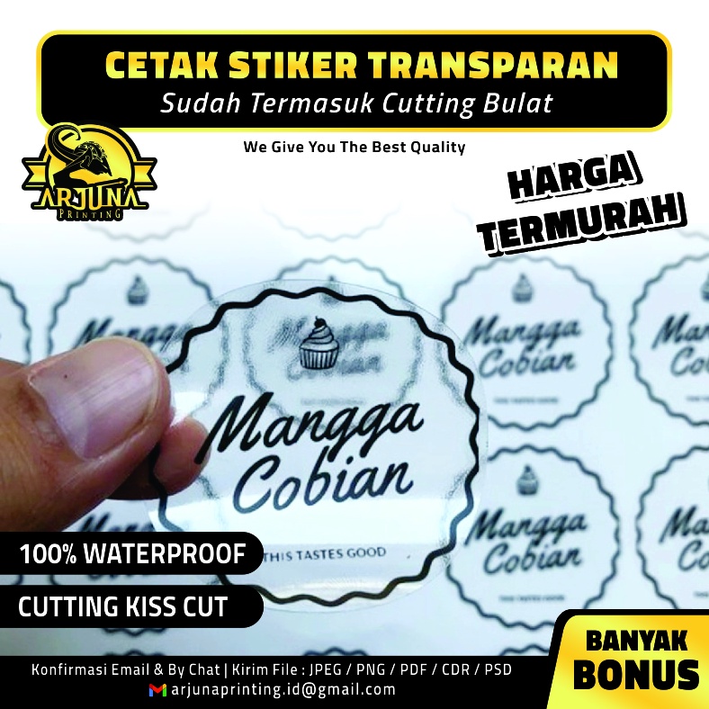 CETAK STICKER TRANSPARAN BULAT ANTI AIR STIKER LABEL STIKER BOTOL MINUMAN PRODUK MAKANAN KEMASAN STIKER LOGO STIKER VINYL LABEL