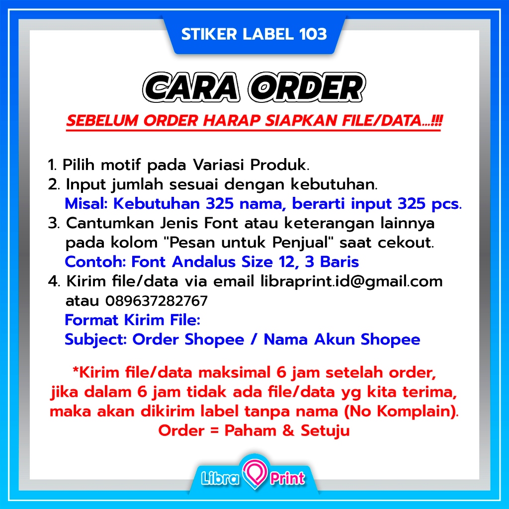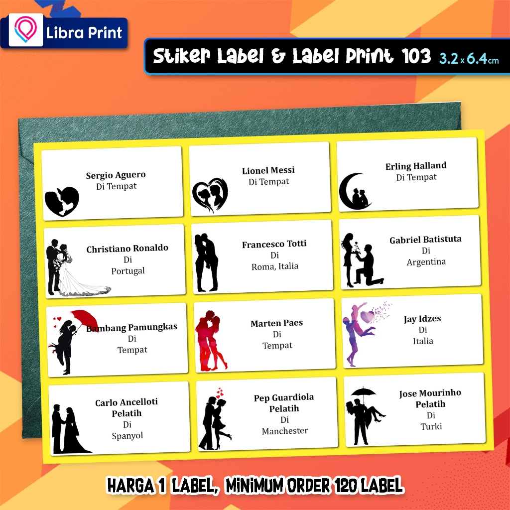 CETAK STIKER LABEL 103 / PRINT LABEL NAMA UNDANGAN / LABEL BUKU MOTIF SILUET