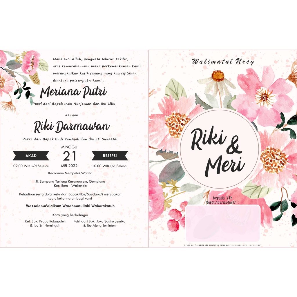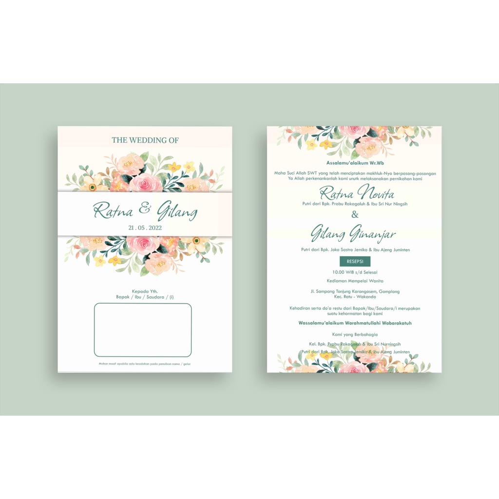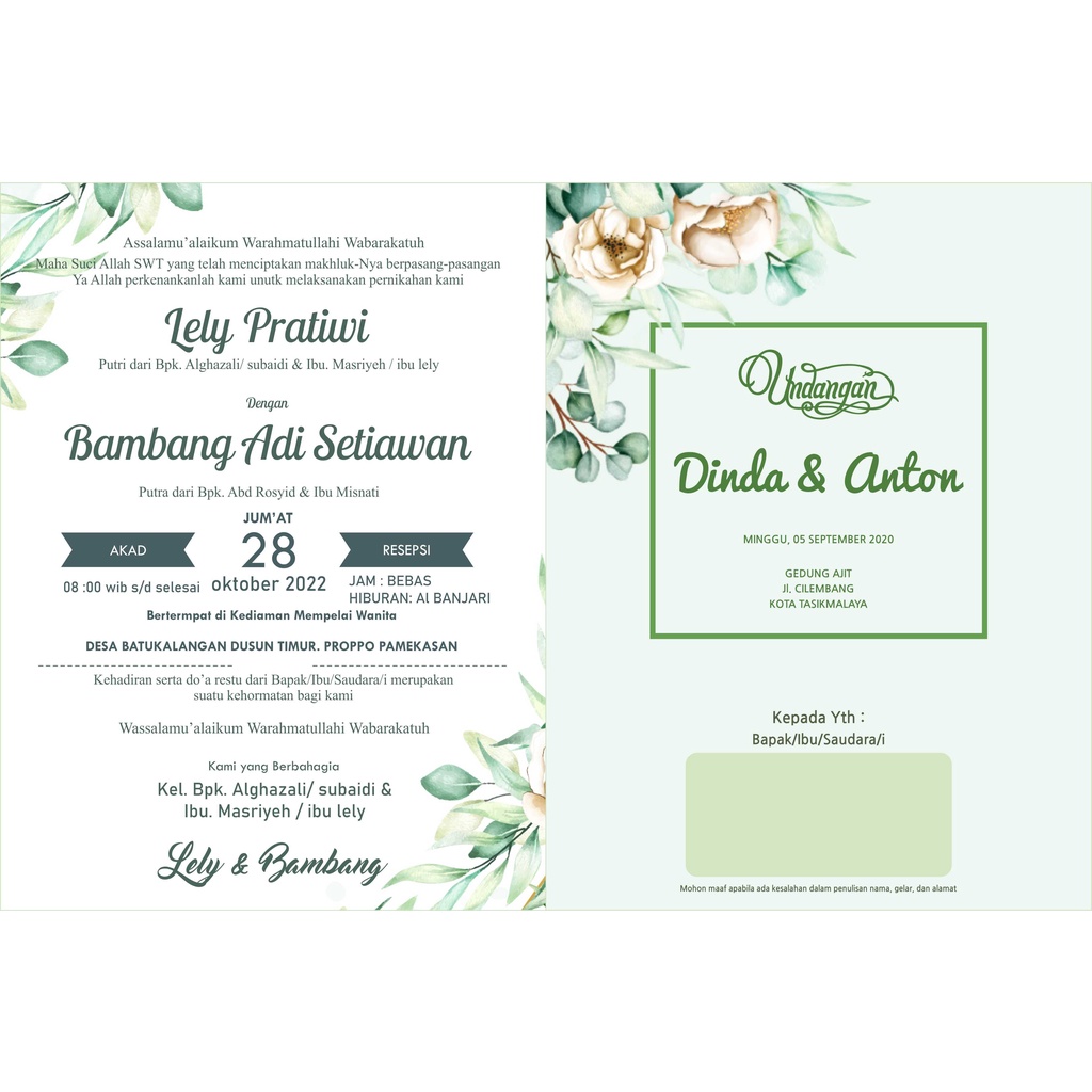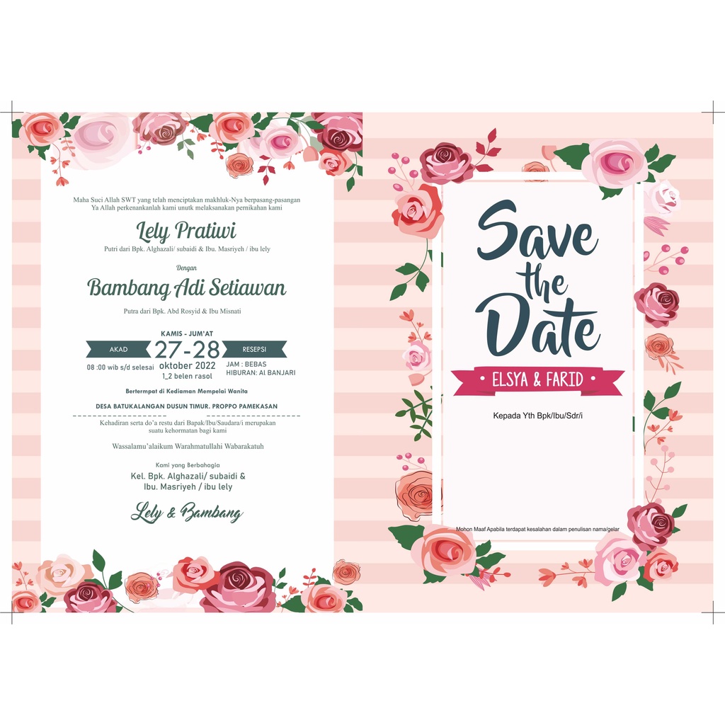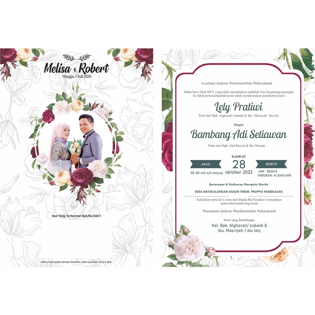 CETAK UNDANGAN PERNIKAHAN SINGGLE BOLAK - BALIK