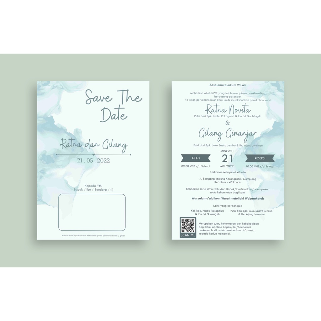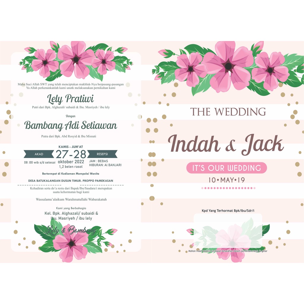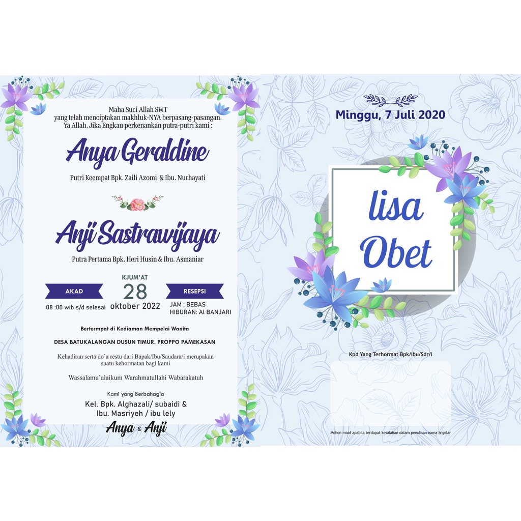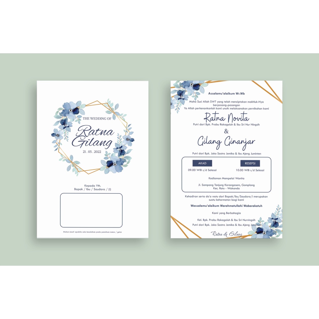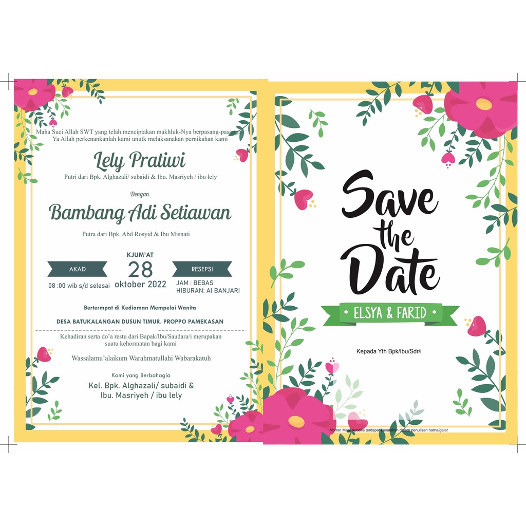 CETAK UNDANGAN PERNIKAHAN SINGGLE BOLAK - BALIK