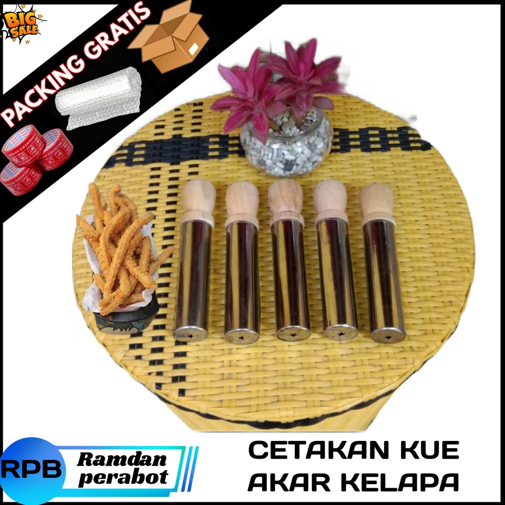 Cetakan kue akar kelapa bahan stainless Dorongan kayu