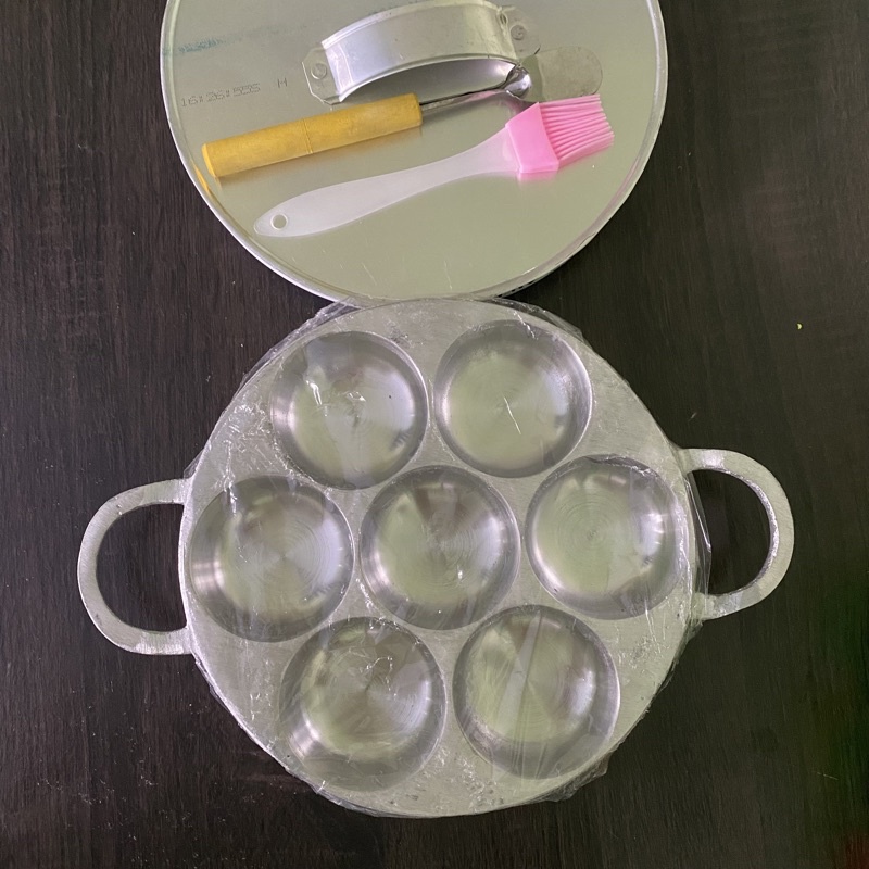 CETAKAN KUE LUMPUR Isi 7 Lubang + Tutup/ Bahan aluminium Cor Tebal Anti Lengket / Bonus Sotel dan Kuas