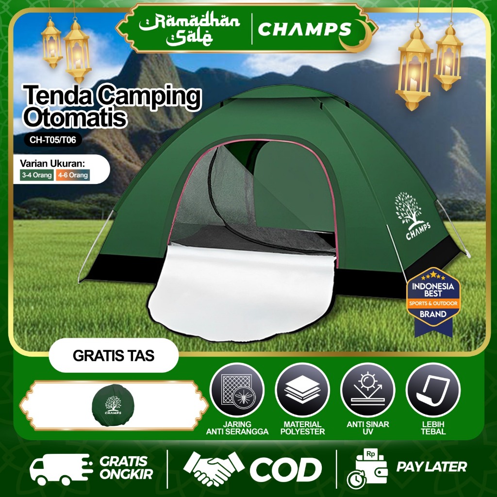 CHAMPS Tenda Camping Otomatis Lipat | Tenda Portable Outdoor Indoor | Tenda Gunung Model Damo Camo | Tenda Kemping Murah Premium CH-T03 CH-T05 CH-T06
