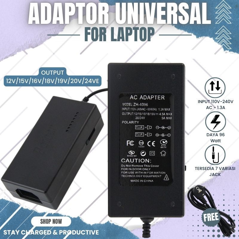 CHARGER LAPTOP ADAPTOR UNIVERSAL 96W - MULTI CONNECTOR