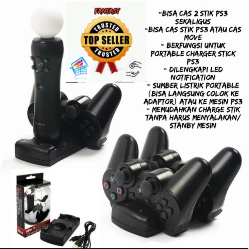 CHARGING DOCK / DUAL CHARGING STATION 2IN1 USB CHARGER STAND DOCK FOR PS3 MOVE & STICK CONTROLLER