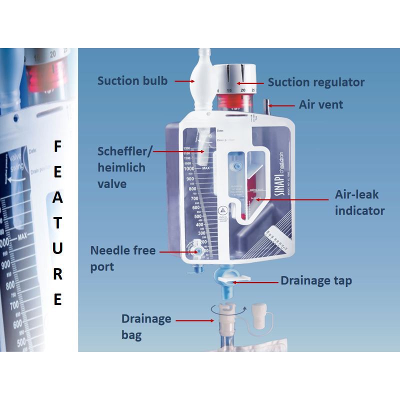 CHEST DRAIN XL 1000 SC kapasitas 1000ml SINAPI sinapi - WSD WATER SEAL DRAINAGE bukan redax atau romsons