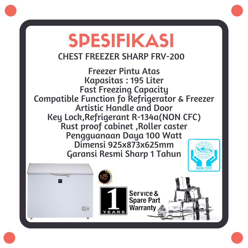 CHEST FREEZER 205 LITER SHARP FRV-200 - White