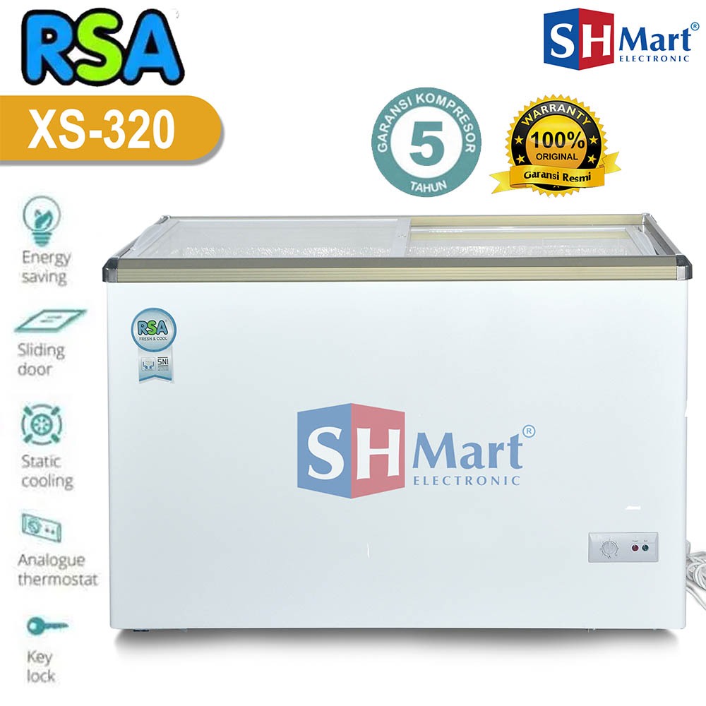 CHEST FREEZER RSA SLIDING KACA FREEZER BOX 100 LITER XS-110 / 171 LITER XS-200 / 288 LITER XS-320 GARANSI RESMI (MEDAN)