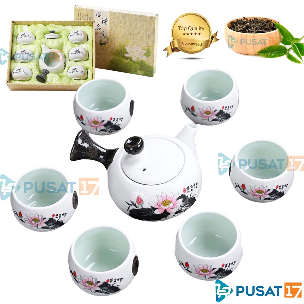 CHINESE TEA POT SET CERAMIC C19 CLASSIC 6 CUPS TEKO TEH SET 6 CANGKIR HADIAH SOUVENIR GIFT BOX