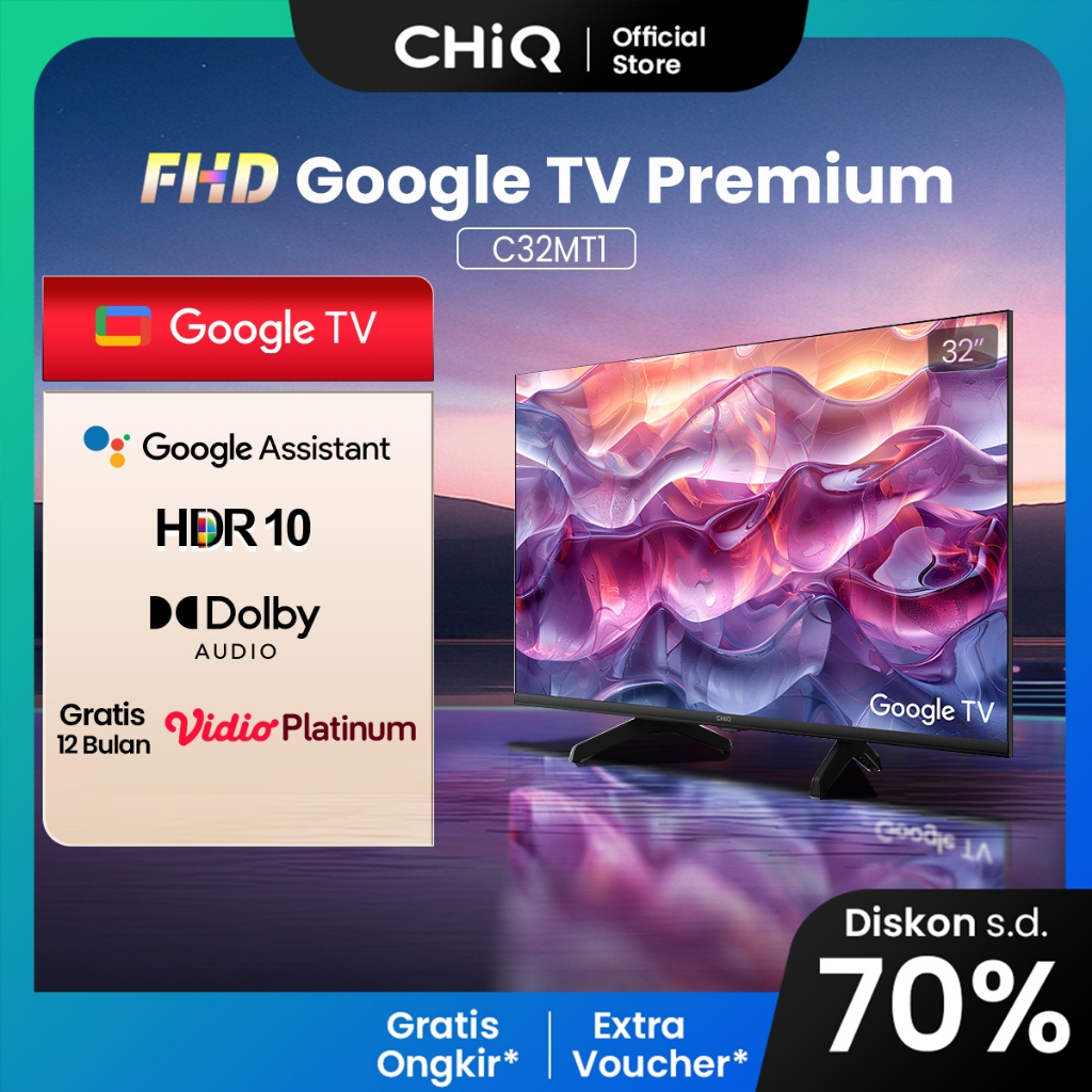 CHiQ by Changhong Google TV 32 inch FHD Google Smart TV Digital TV Dolby Audio Google Play Netflix Youtube Bluetooth USB Google Assistant G7N G7P PRO (C32MT1)