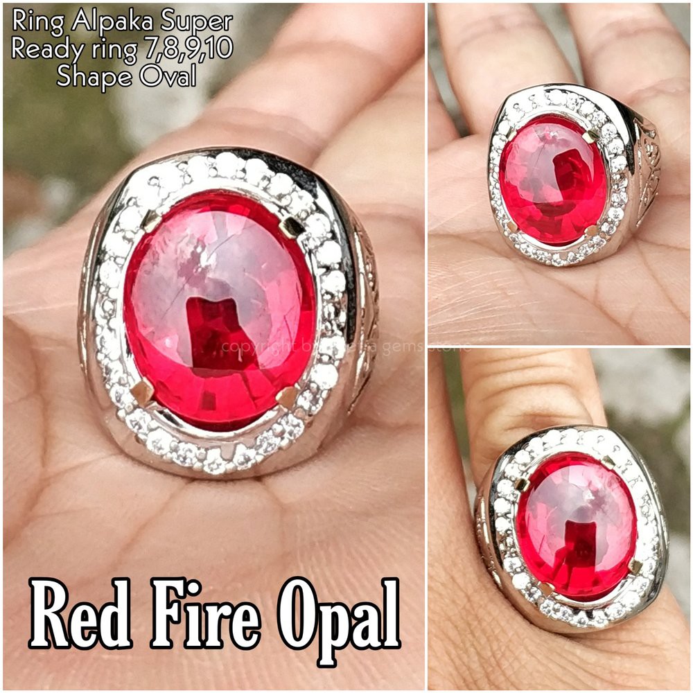 CINCIN BATU AKIK PERMATA RED FIRE OPAL LUSTER API MENYALA KANTORAN PUNYA