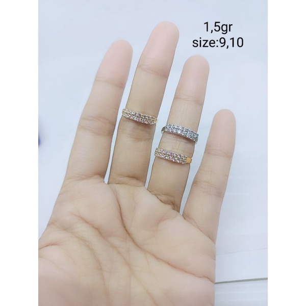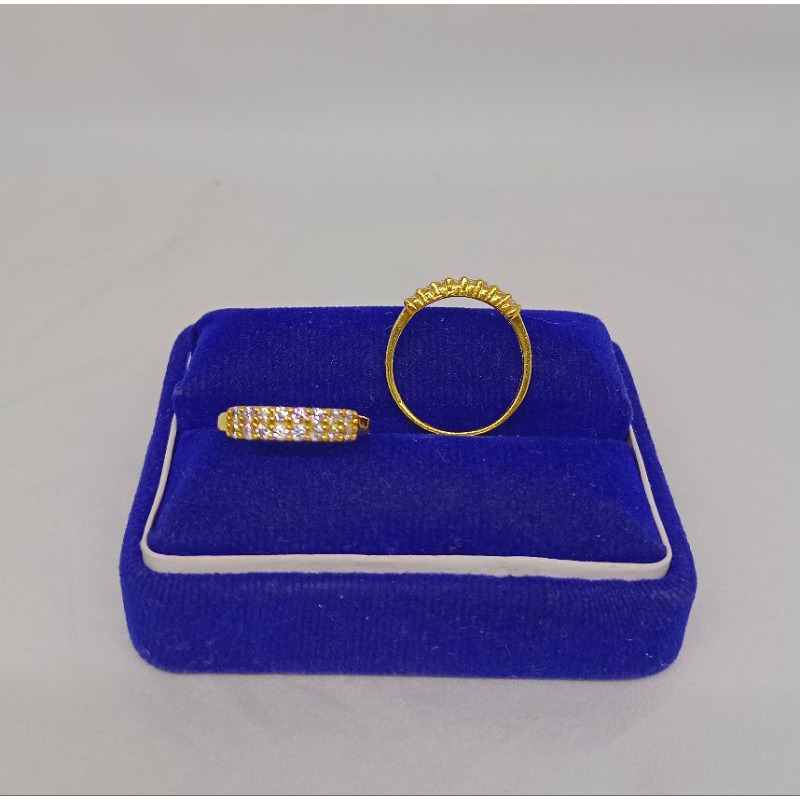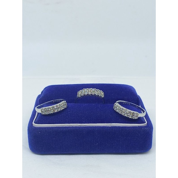 CINCIN PERAK 925 ASLI SILVER LAPIS EMAS/CINCIN DOUBLE MATA PUTIH 2 BARIS USIA TANGGUNG/ASLI SILVER 925/PERHIASAN CINCIN TANGGUNG