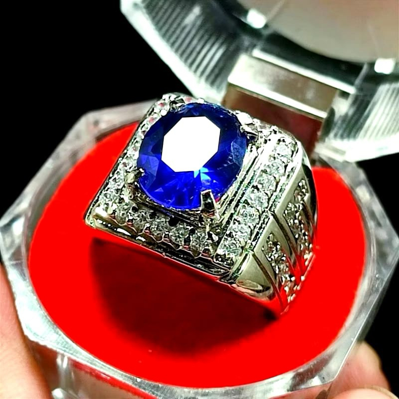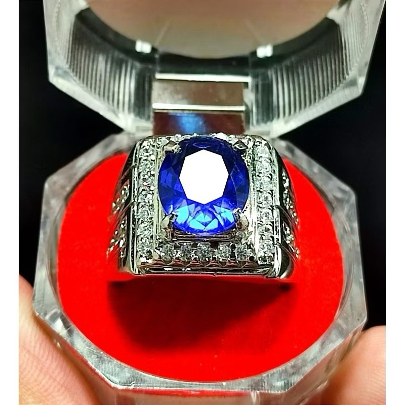 CINCIN PRIA AKIK PERMATA KING SAFIR RING PERAK BANGKOK RING KOTAK SIAP PAKAI