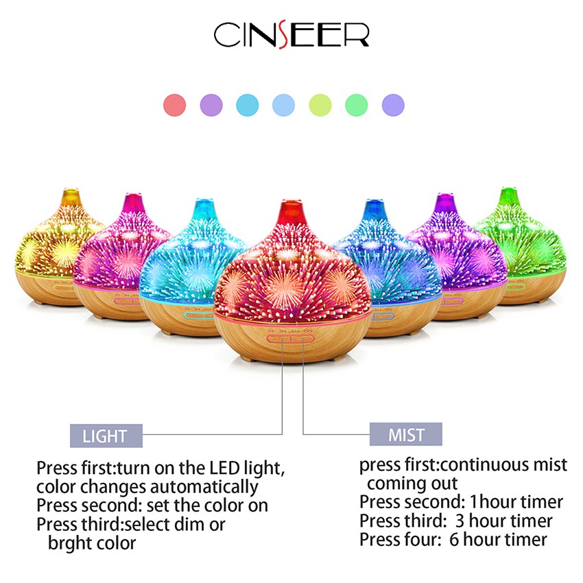 CINSEER humidifier diffuser model kerucut antik motif kembang api 400ml