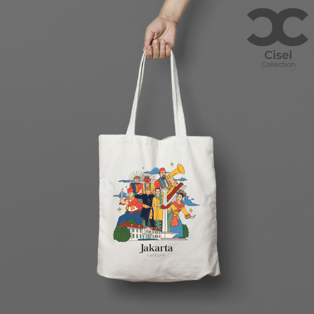 CISEL Tote Bag Tas Kanvas Resleting TEBAL Kota Besar dan Wisata Indonesia Lucu Imut Aesthetic Ukuran 30x40 Cisel Collection