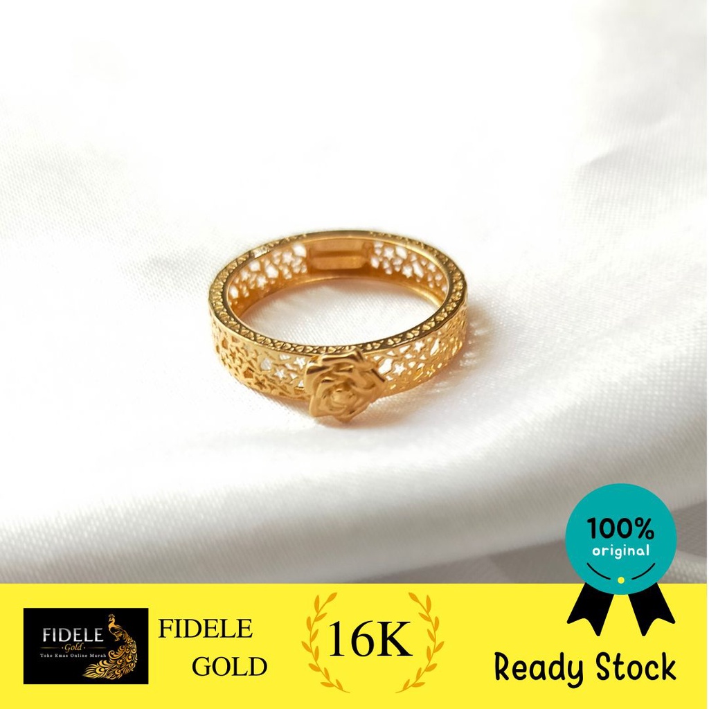CIncin Bunga Mawar Mewah Disney Cincin Belle Cincin Emas Tua 16k