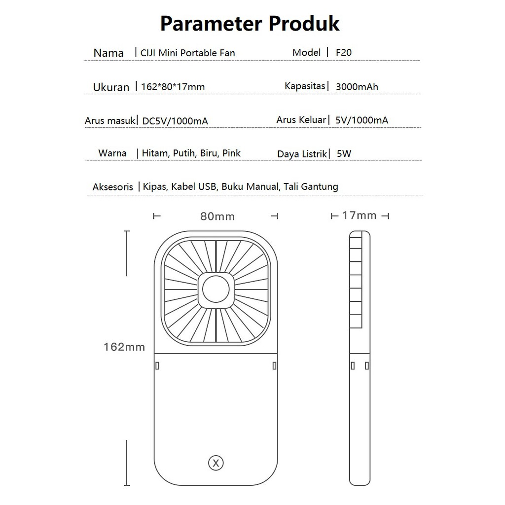 CJMF-FP CIJI Kipas Angin Portable Mini Bisa di Gantung Multifungsi + Powerbank 3000mAh