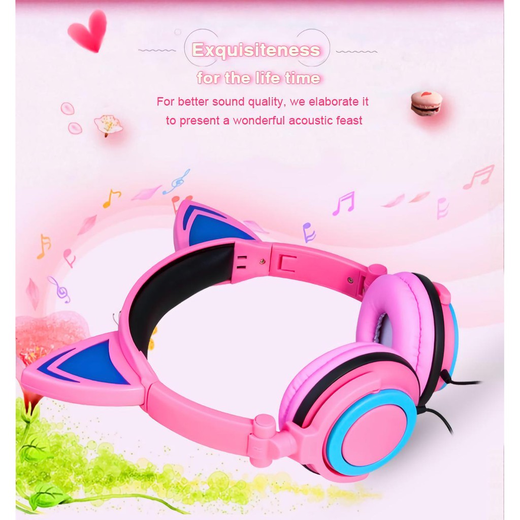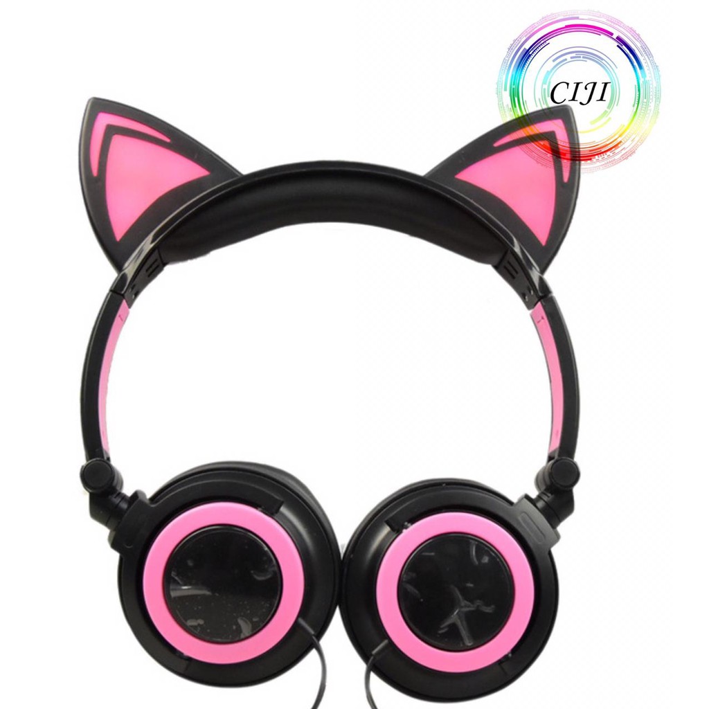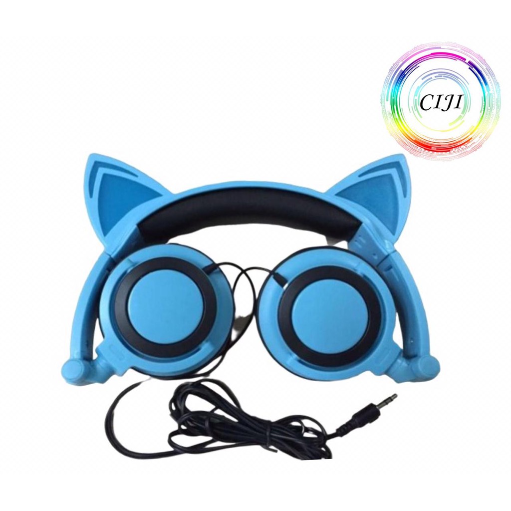 CL 107 CAT HEADPHONE GAMING LIPAT DESAIN TELINGA KUCING DENGAN LAMPU LED DI KUPING
