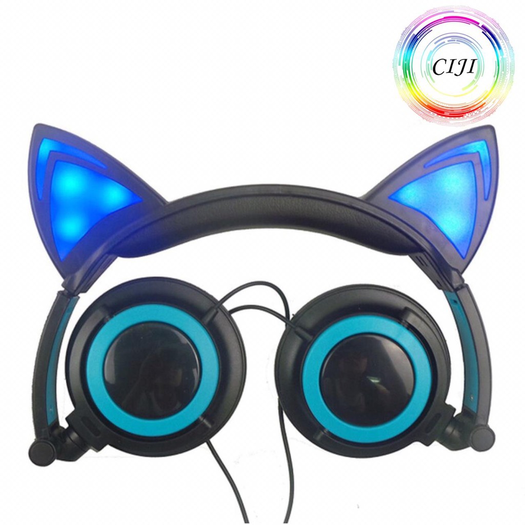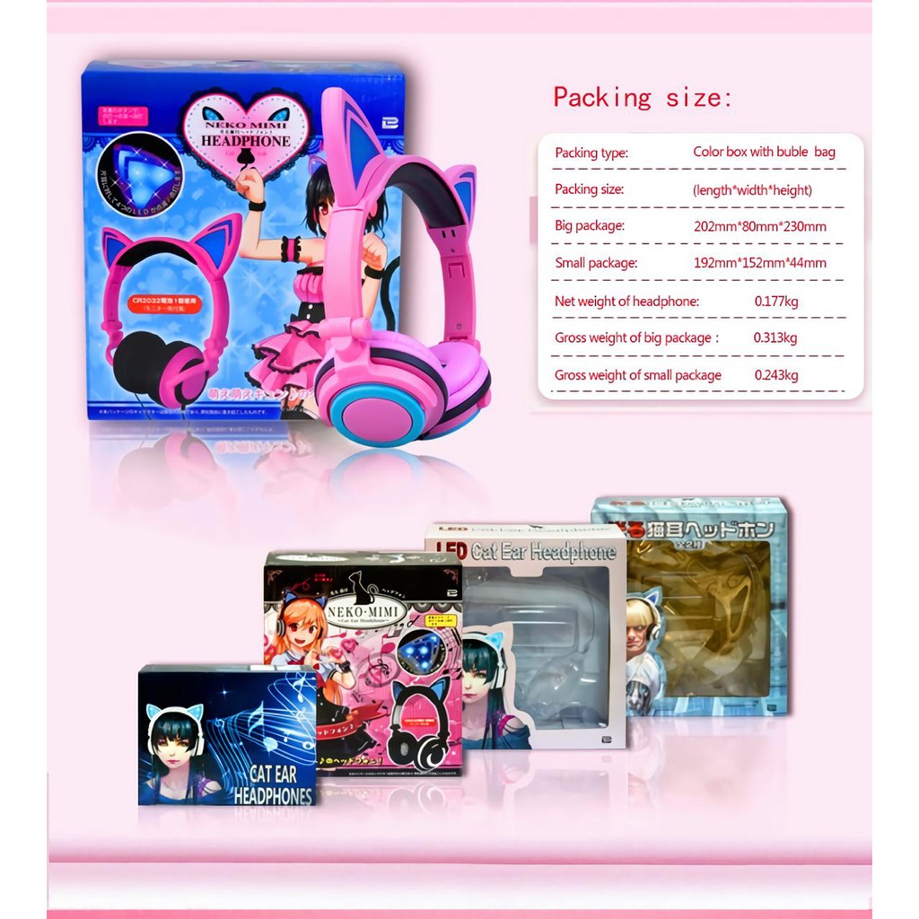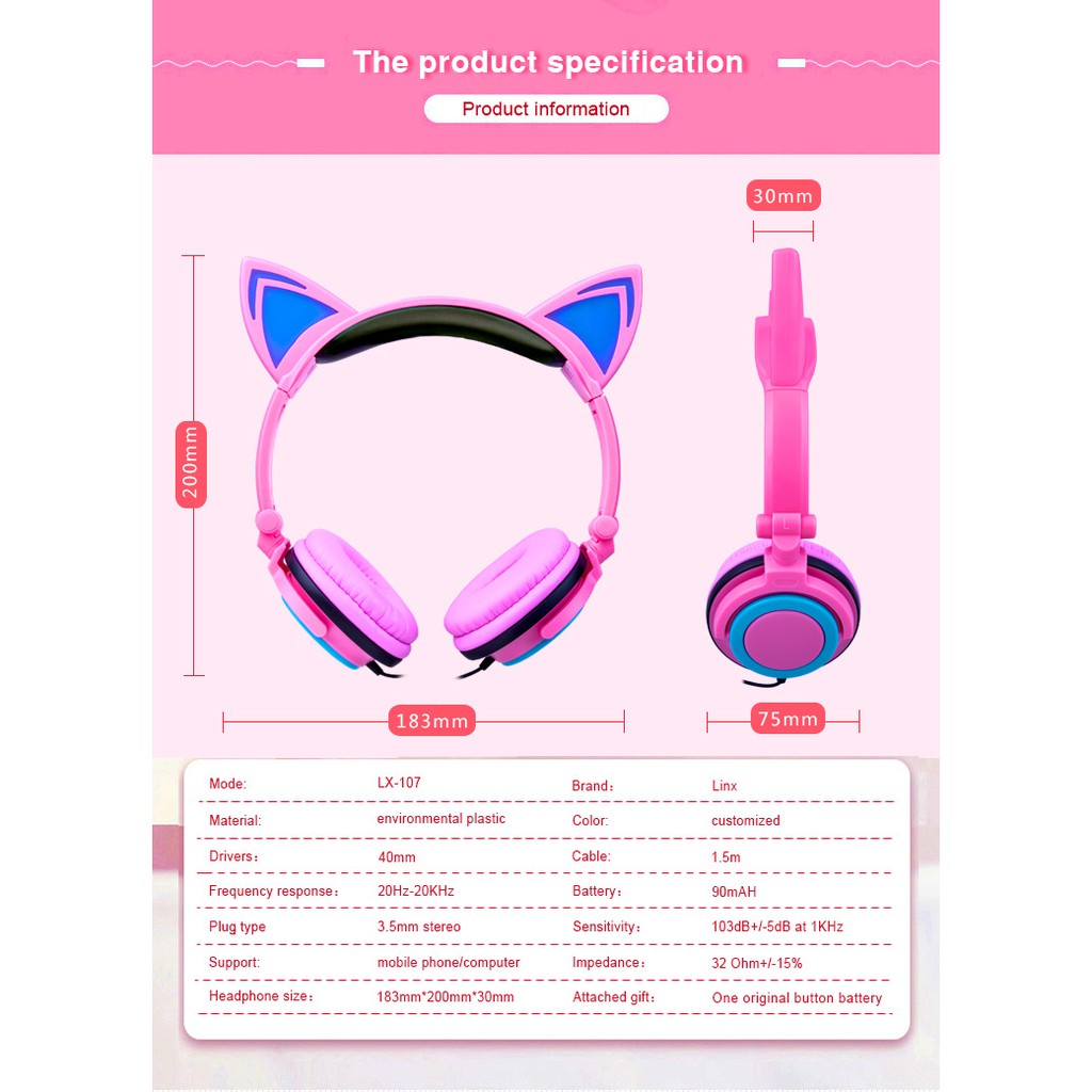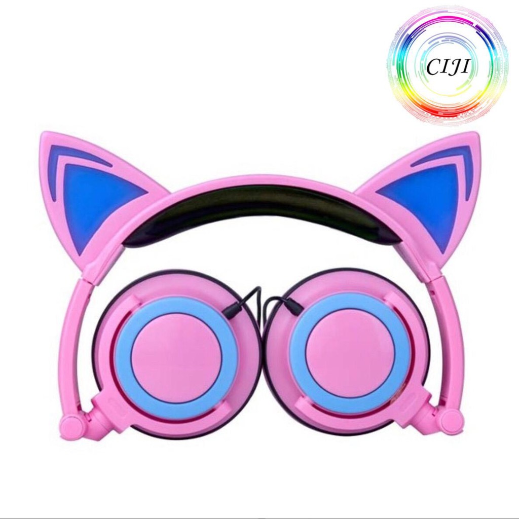 CL 107 CAT HEADPHONE GAMING LIPAT DESAIN TELINGA KUCING DENGAN LAMPU LED DI KUPING