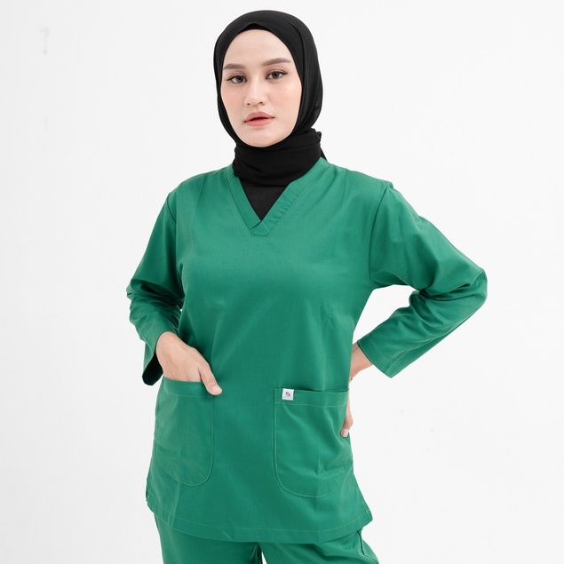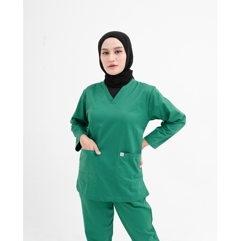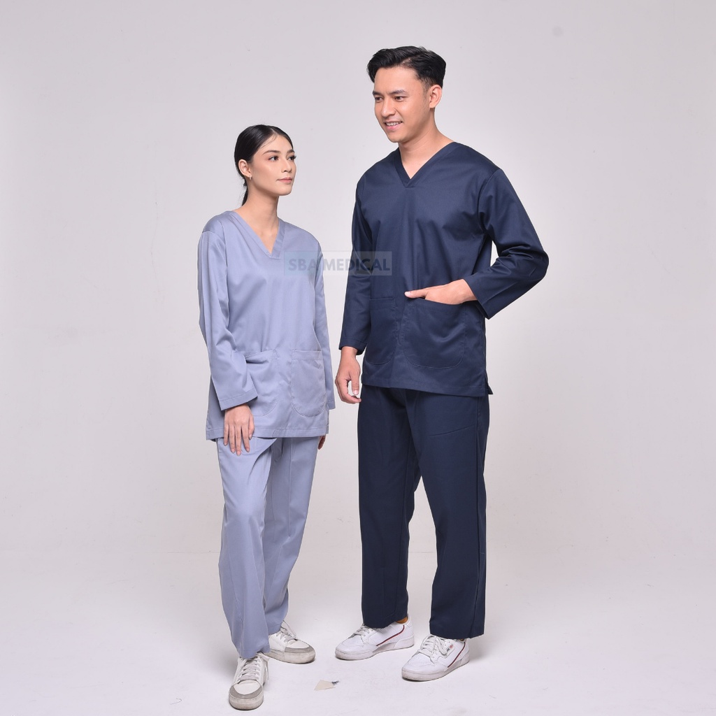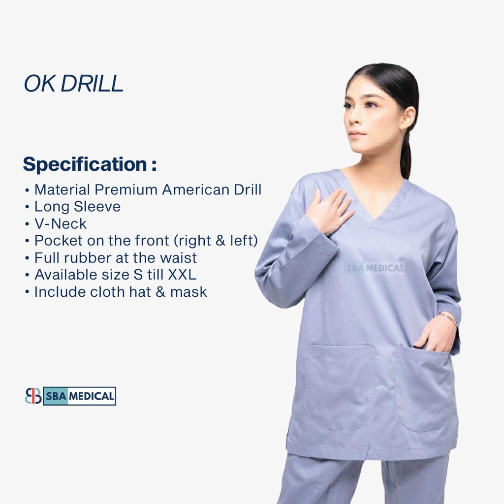 CLASSIC SCRUB DRILL - SBA MEDICAL - Set Baju OK Katun Drill Lengan Panjang dan Pendek | Sergam Meidis Perawat Dokter Bidan dan Rumah Sakit | Size S M L XL XXL