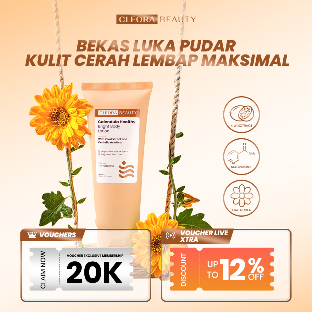 [Promo Special] Cleora Calendula Healthy Bright Body Lotion Handbody Wanita Pria With Niacinamide Brightening Memudarkan Bekas Luka Pereda Eksim Body Butter Skin Care Whitening Lotion Pemutih Seluruh Tubuh BPOM Kosmetik Penghilang Koreng Gelap Tangan Kaki