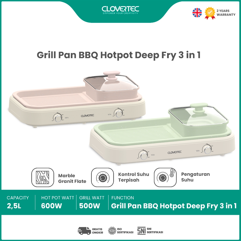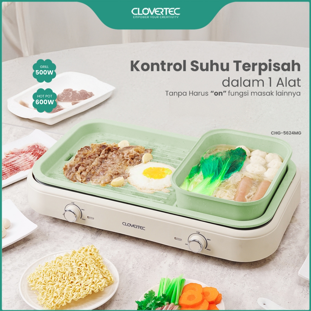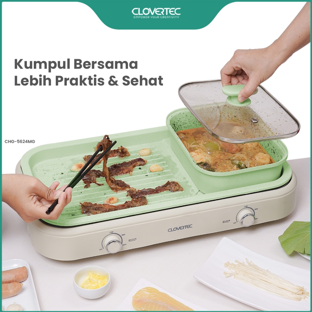 CLOVERTEC Panggangan Listrik Grill Pan BBQ Hotpot 3 in 1 Granite Coating Anti Lengket CHG-5624CM