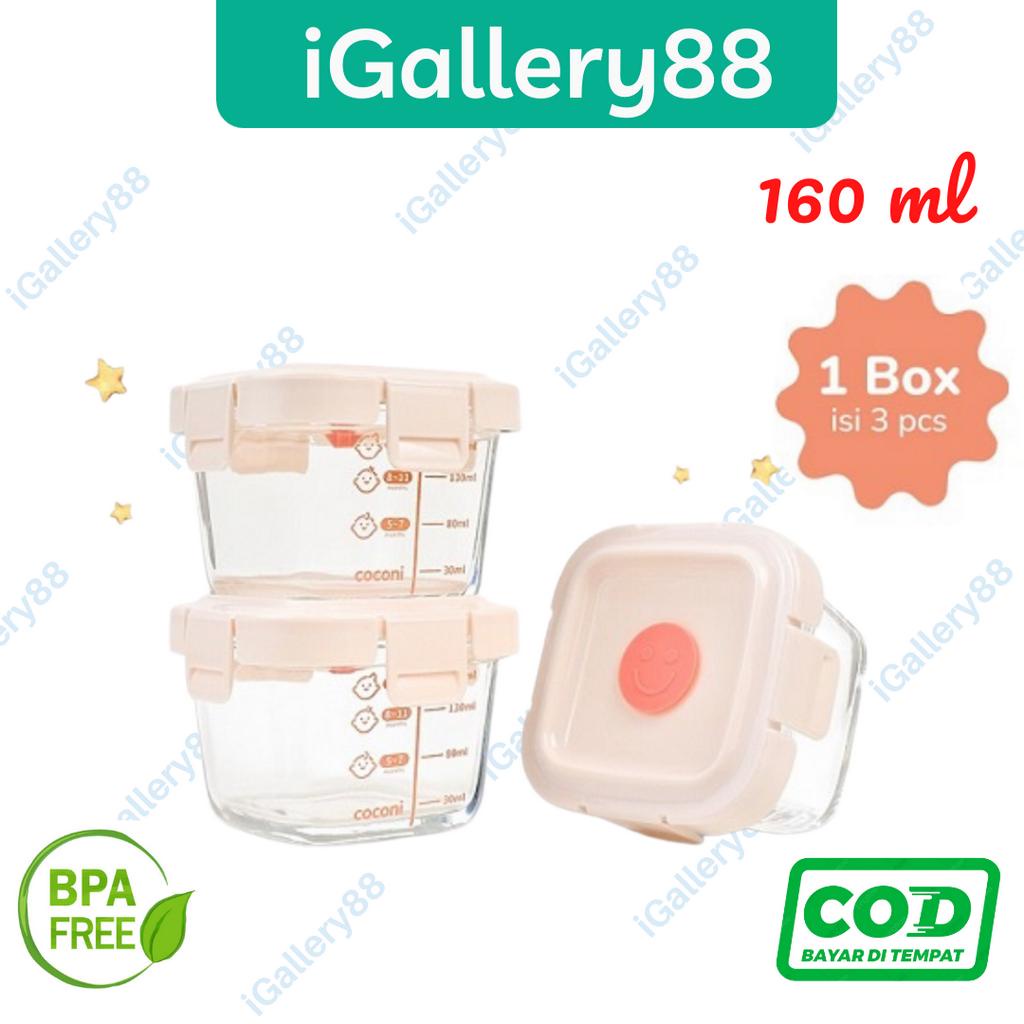 COCONI Baby Food Glass Container 3 Pcs x 160ml | Wadah Penyimpanan Makan Kaca Anak MPASI Kedap Udara