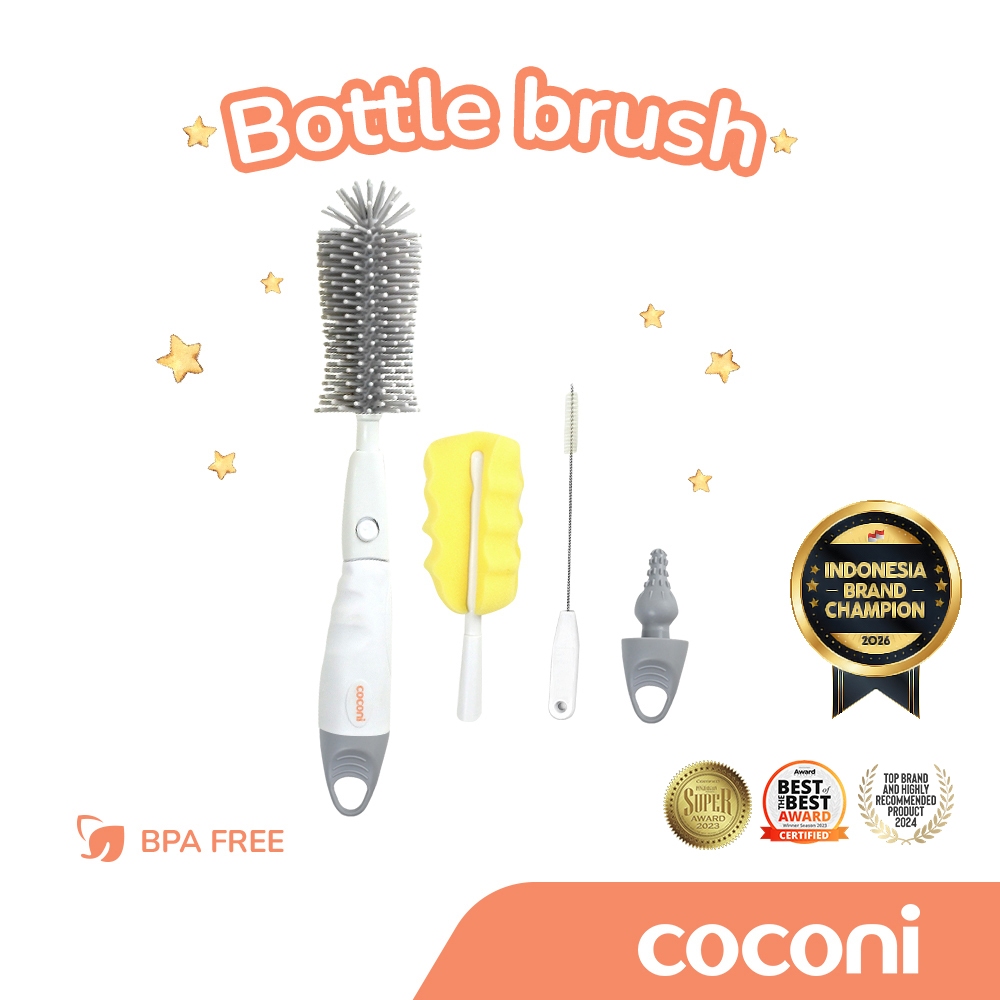 COCONI Quick Cleaning Silicone Bottle Brush 4 in 1 | Sikat Pembersih Botol Susu Dot Bayi Silikon Sponge