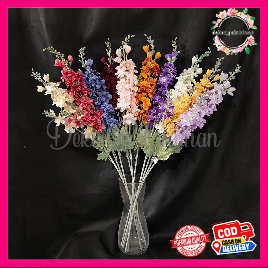 COD 1PCS BUNGA DELPHINIUM SPRING - BUNGA PLASTIK ARTIFICIAL IMITASI - SNAPDRAGON ONCIDIUM - BUNGA SEDAP MALAM UNTUK HIASAN DEKORASI WEDDING - IMPORT