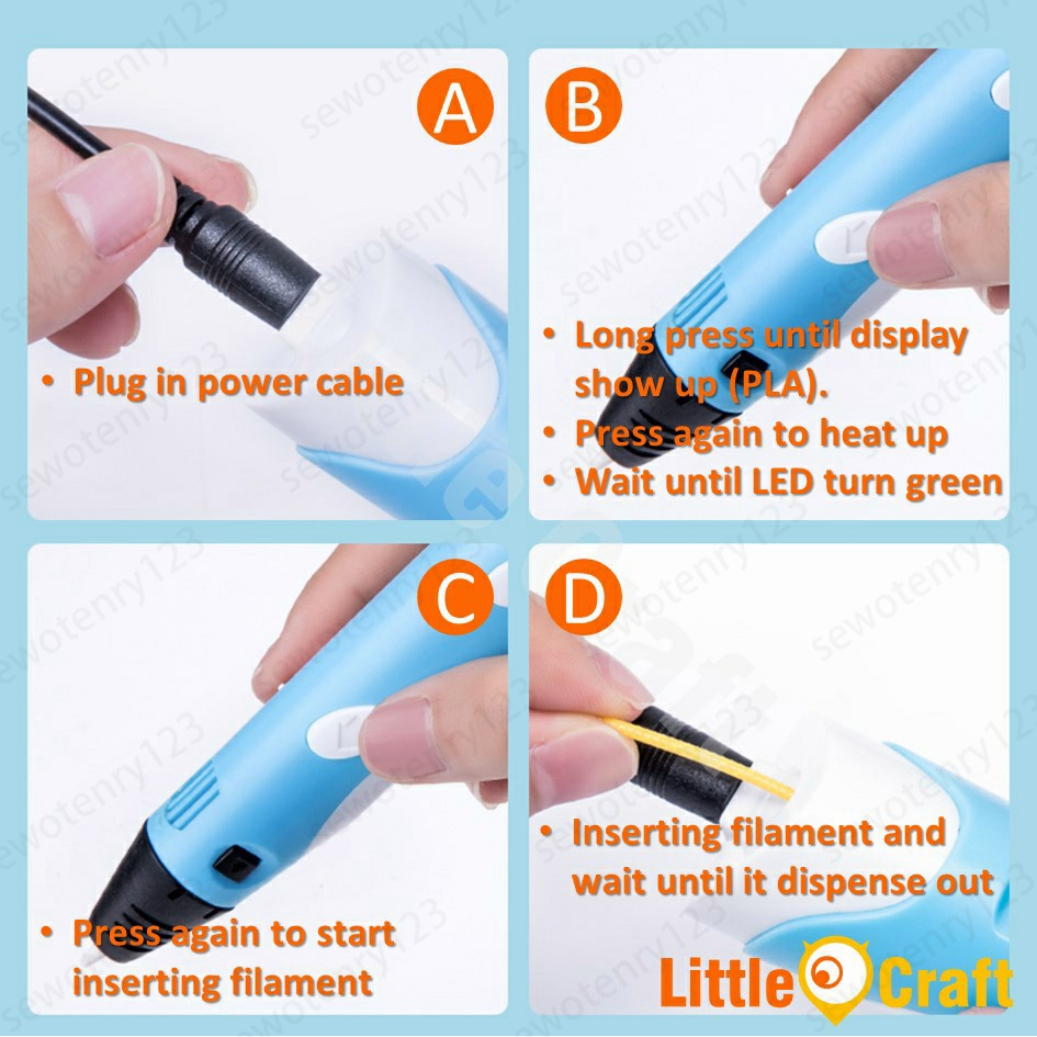 COD 3D Printing Pen 3D Printer Arts Pen Making Doodle Arts Crafts USB Cable Intelligent Murah 3D Pen Free PLA Filament