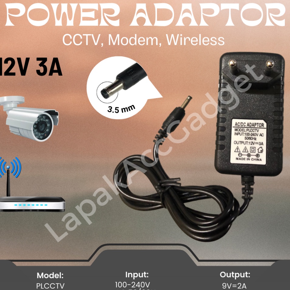 COD ADAPTER ADAPTOR DC 12V 3A JACK 35mm Real ampere TRAFO POWER SUPPLY UNTUK LAMPU LED STRIP CCTV DVR Modem wifi Ip cam IPCAM dan perangkat elektronik lainnya
