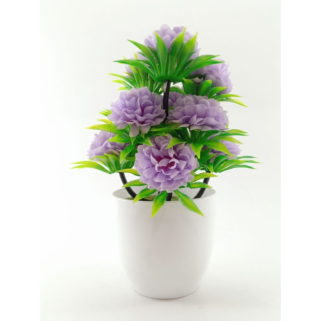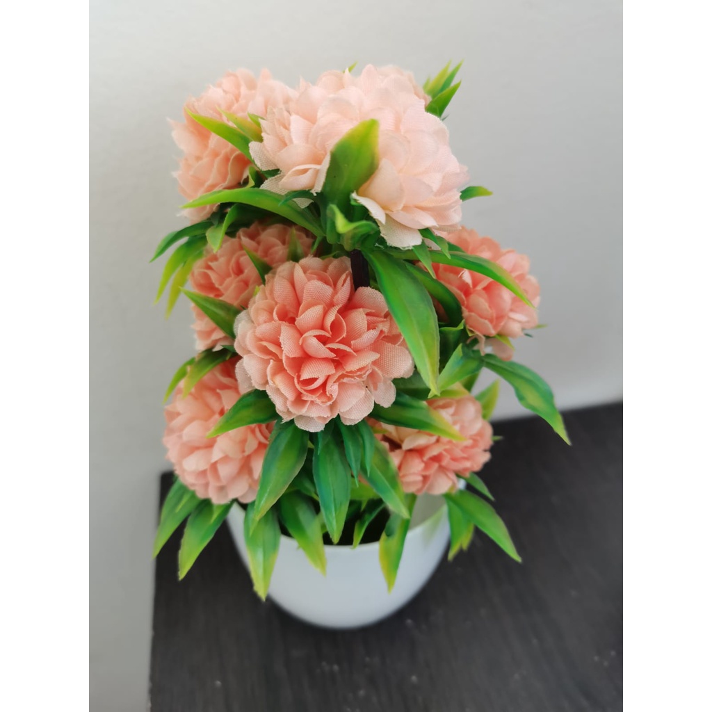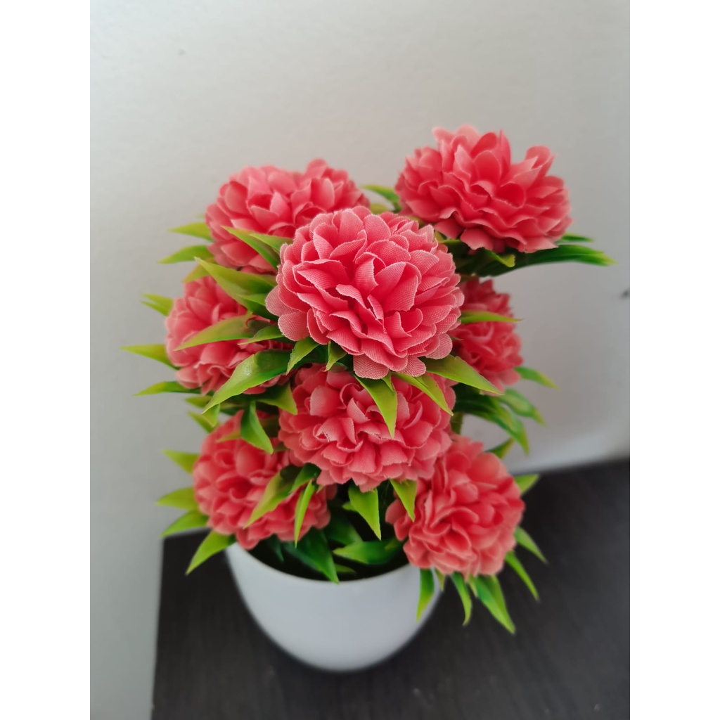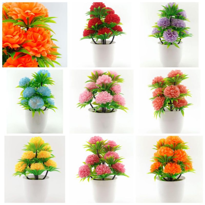 COD BUNGA ARTIFISIAL BUNGA POMPOM SET POT BULAT PUTIH BUNGA HIAS WARNA BUNGA PLASTIK BP8841