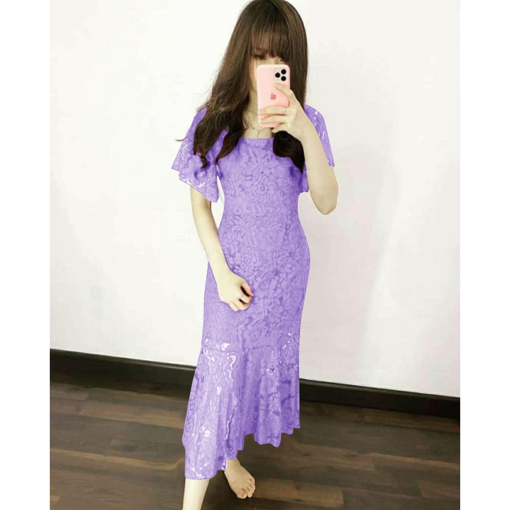 COD - Baju Dress Panjang Elegan Natal Model Korea / Dress Natal Party Warna Ungu Lilac / gaun panjang pesta kondangan / Lavender dress import Mewah Terbaru 2022-2023