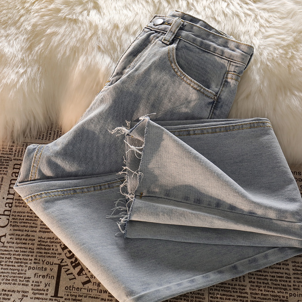 COD Celana Jeans Longgar Wanita Pinggang Tinggi Biru Muda Korea Baru