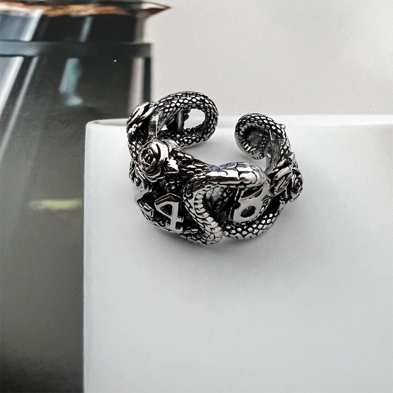 COD Cincin Cross Retro Pria Wanita Titanium Punk Y2K Fashion Anti Karat Fashion Cincin Couple Ring-G