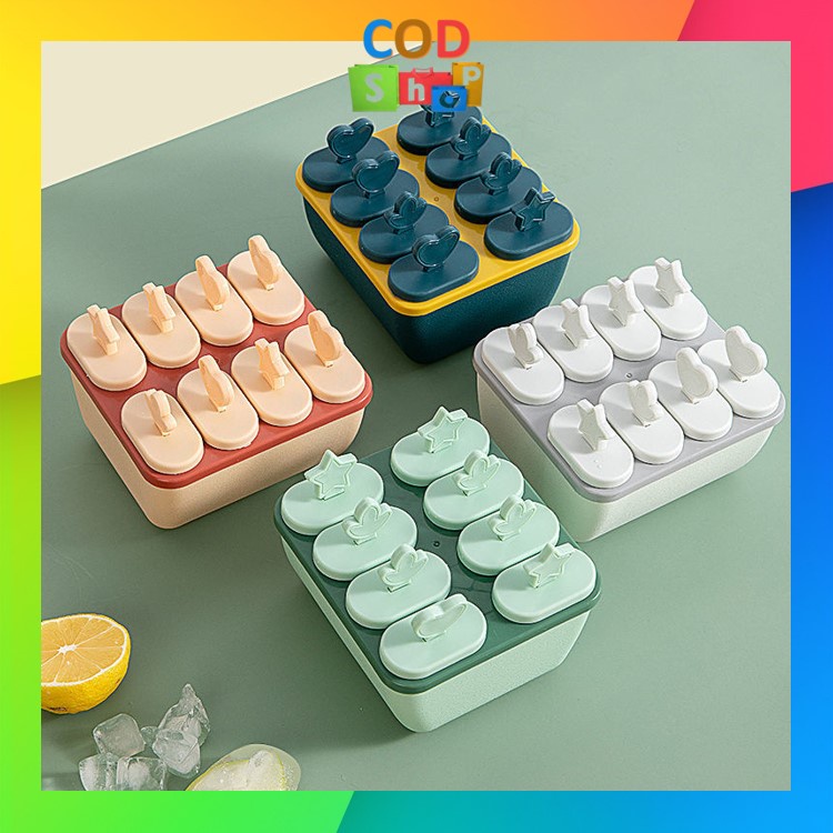 COD - H5975 Cetakan Ice Cream / Cetakan Es Batu Dengan Tutup / Cetakan Es Krim Stik / Cetakan Es Krim 8 Slot / Es Loli DIY