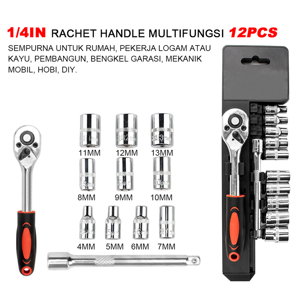 COD KEROH KUNCI PAS SOKET RACHET KUNCI PAS UNIVERSAL MULTI-FUNGSI SET 12Pcs 4-13mm / KUNCI PAS RACHET SET
