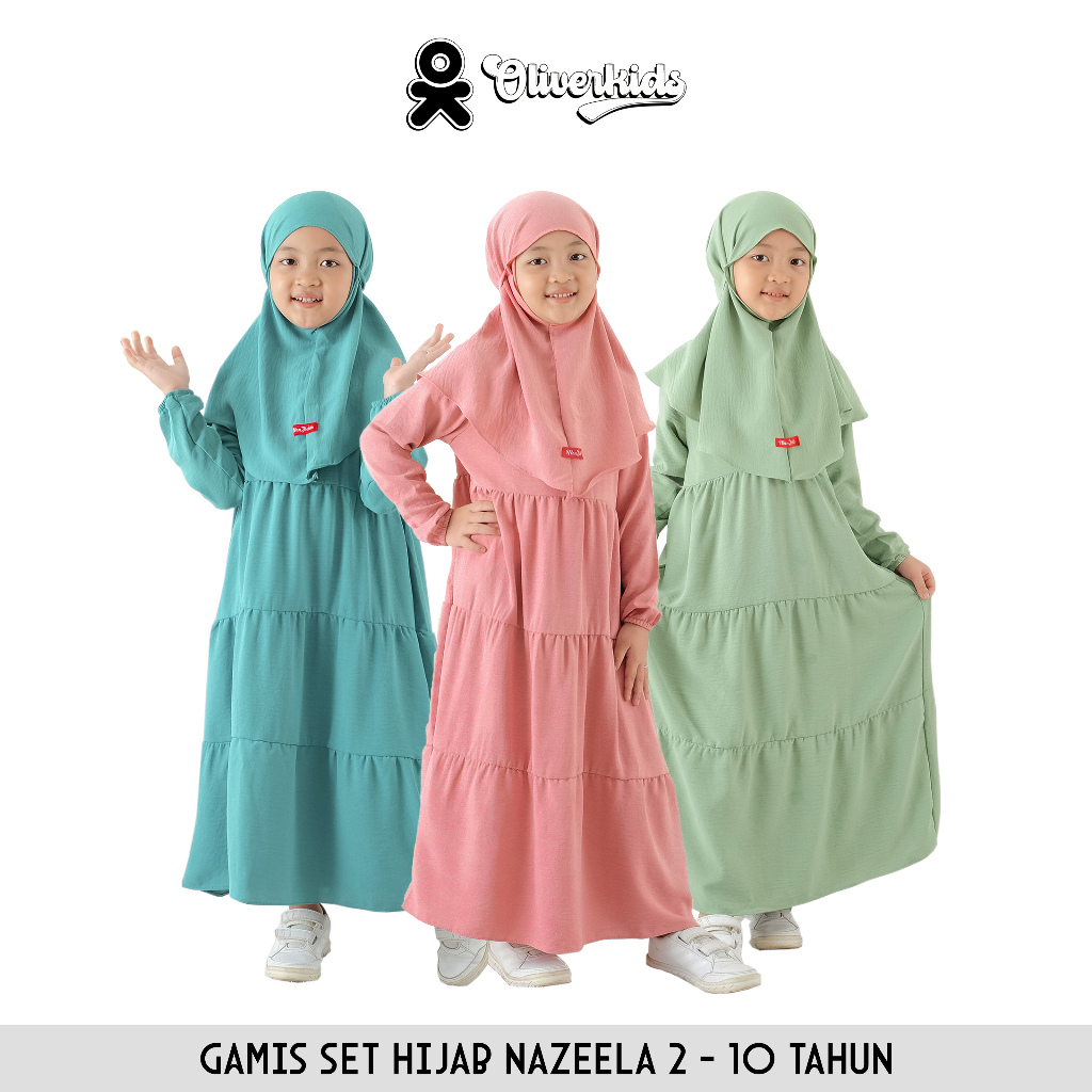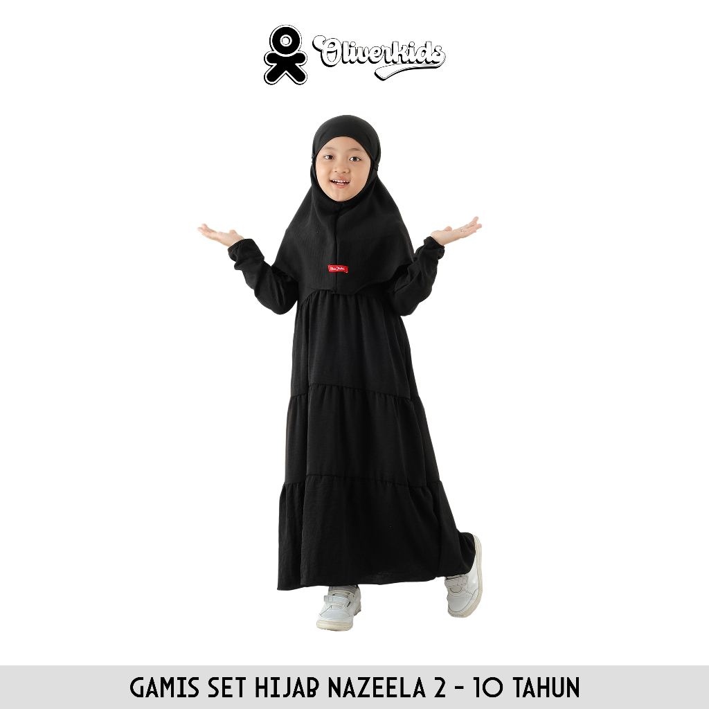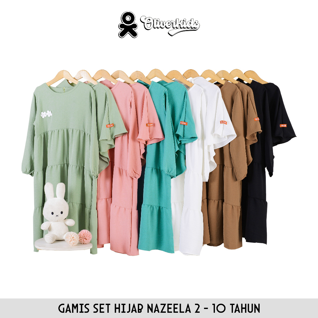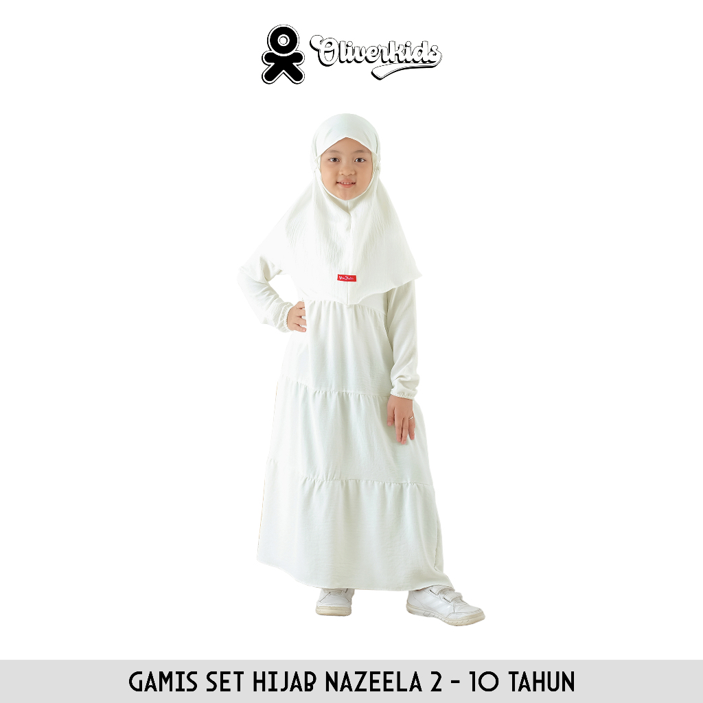 OLIVERKIDS - Nazeela Set Gamis Anak Perempuan 1-10 Tahun Gamis Putih Anak Manasik Ngaji Haji Umroh dan Sekolah