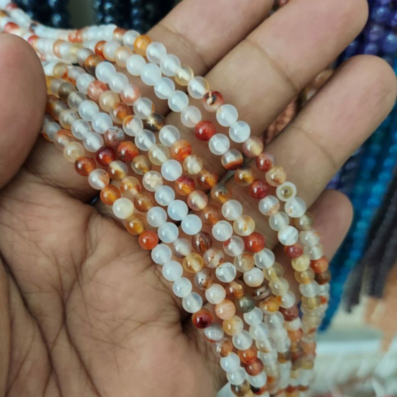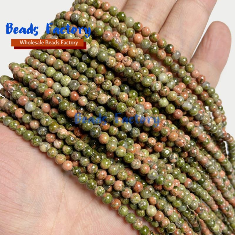 COD Manik-manik Batu Alam 4mm Kepingan Salju Alami Kuarsa Amethyst Unakite Batu Bulat Manik-manik Longgar untuk Membuat Perhiasan DIY
