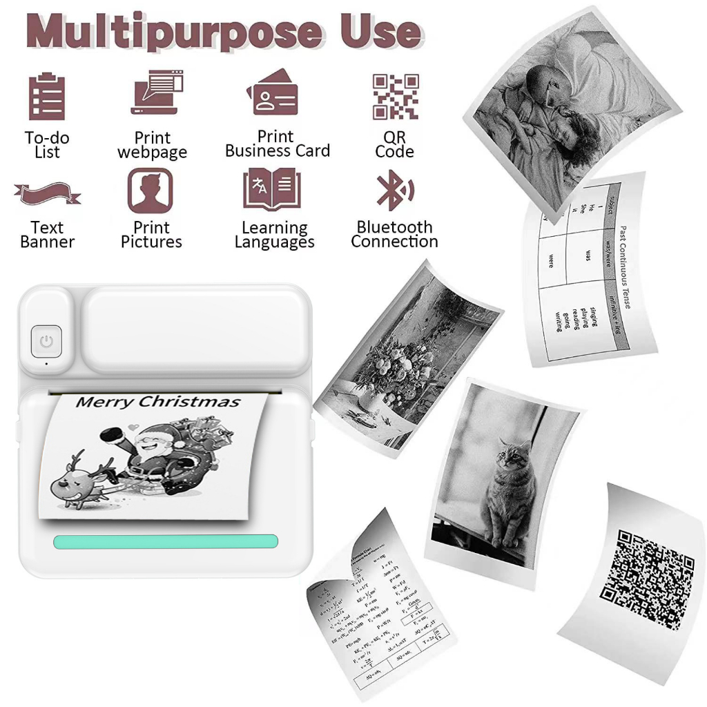 COD Mini Printer Portable Thermal Printer Pocket Printer Wireless Bluetooth Mini Foto Gambar Label Printer Untuk Android iOS DIY Home Use Printer