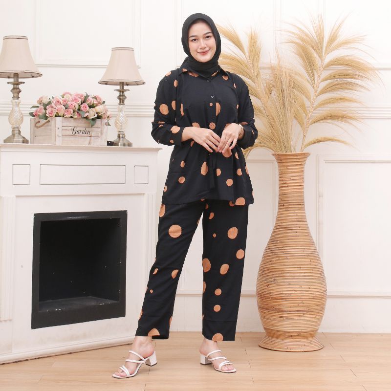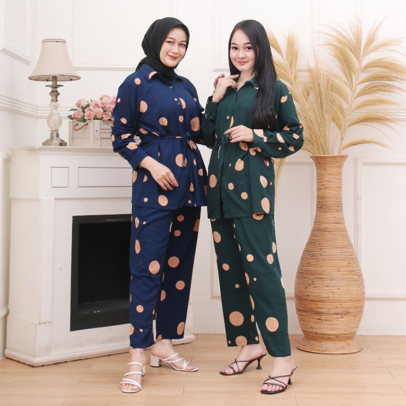 COD ONE SET TIE DYE setelan wanita MOTIF polkadot & akar