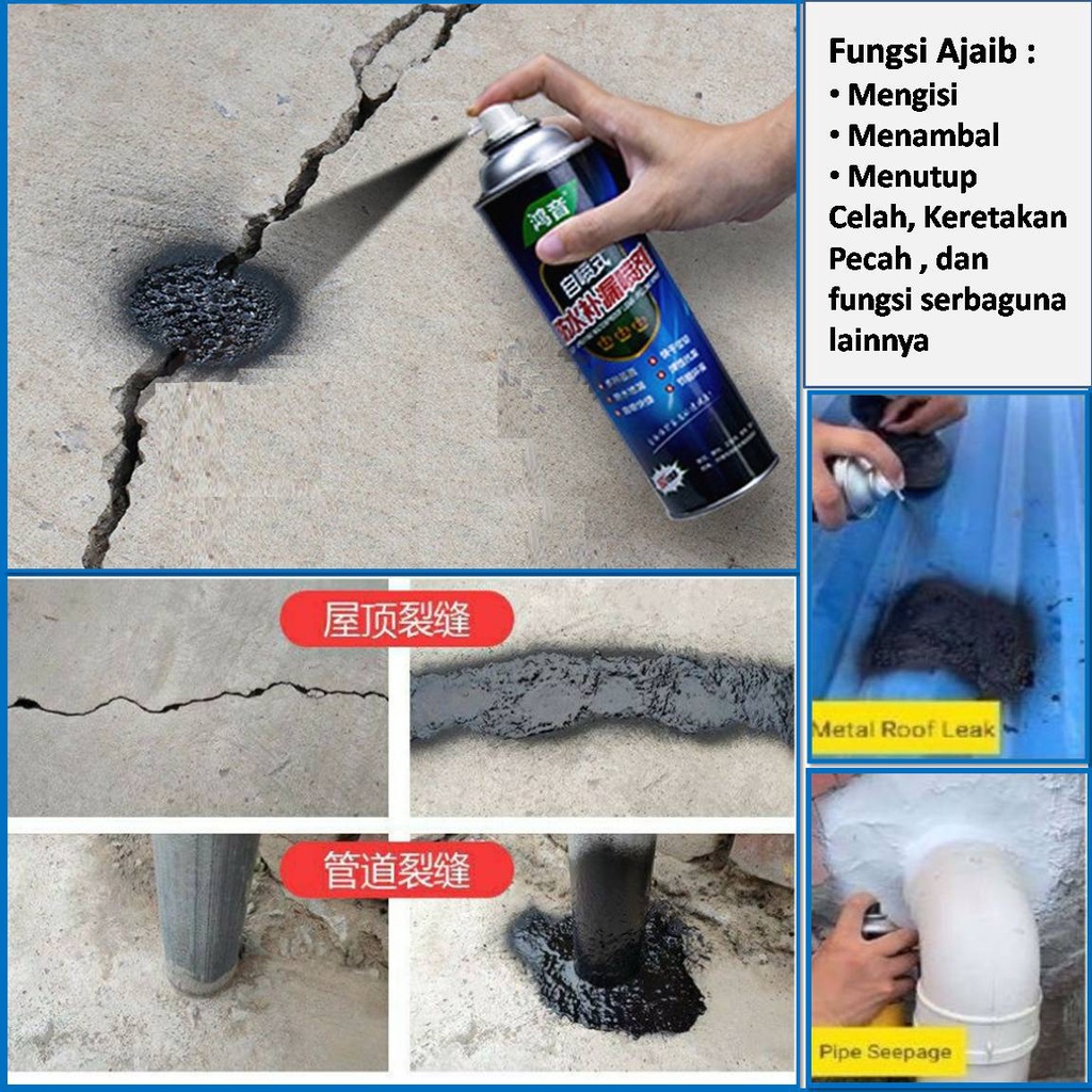 COD - ORIGINAL Spray Ajaib Anti Bocor Waterproof Leak Proof Spray Tape Perekat Ajaib 700 ML Semprotan Ajaib Anti Bocor Tahan Air Atap-Roof Glue Exterior Wall Spray leak-proof Spary paint Cairan perekat bocor Cairan Penambal Pengisi Lem Ajaib