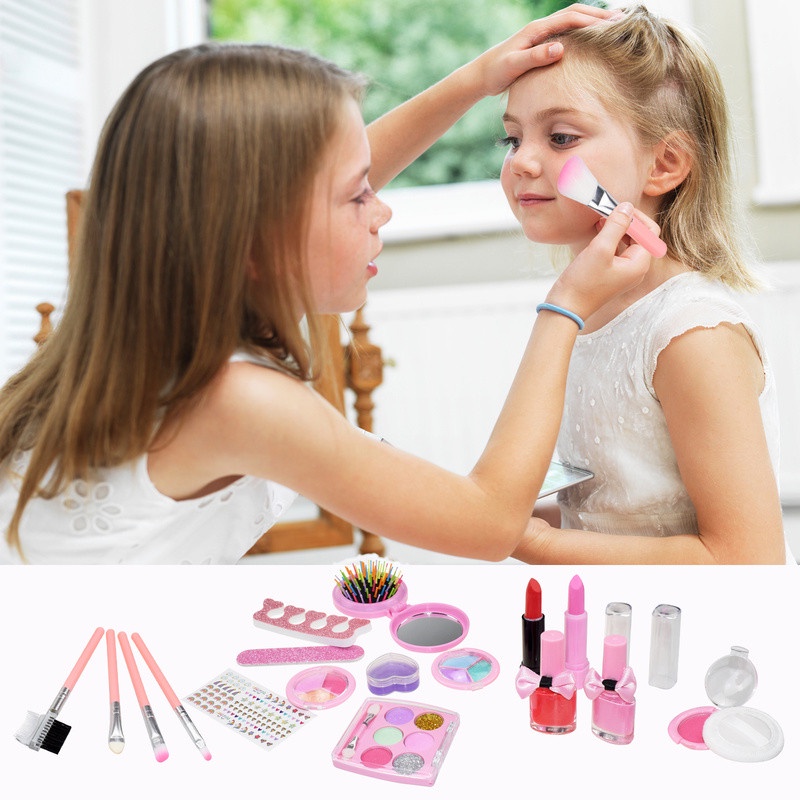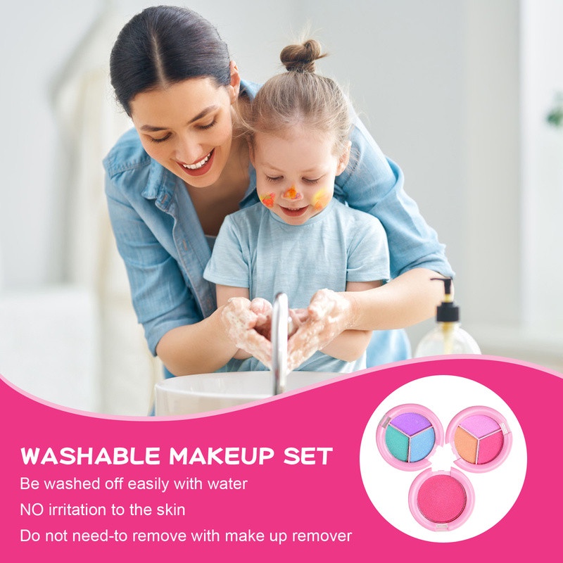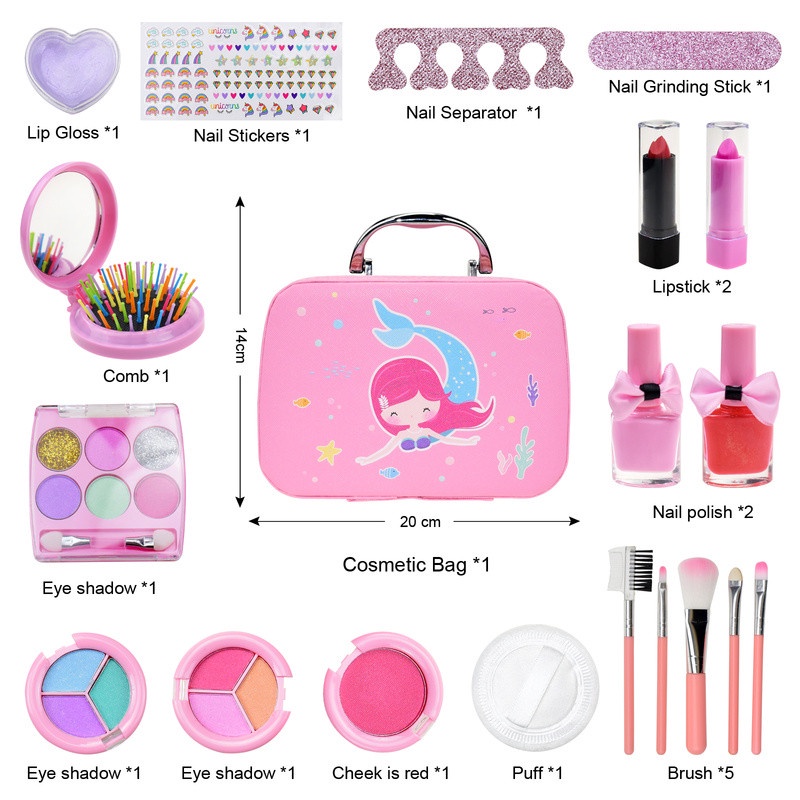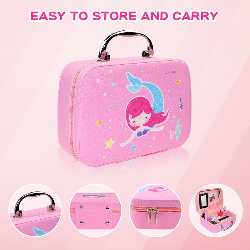 COD+PROMO Mainan Anak Perempuan Make Up Tas DUMMY Kosmetik Lipstick Eye Shadow Makeup Set Mainan Make Up Kit Anak - Mudah Dihapus, Food Grade, Non Toxic Aman Mainan make up anak dengan fungsi asli - kado anak cewek