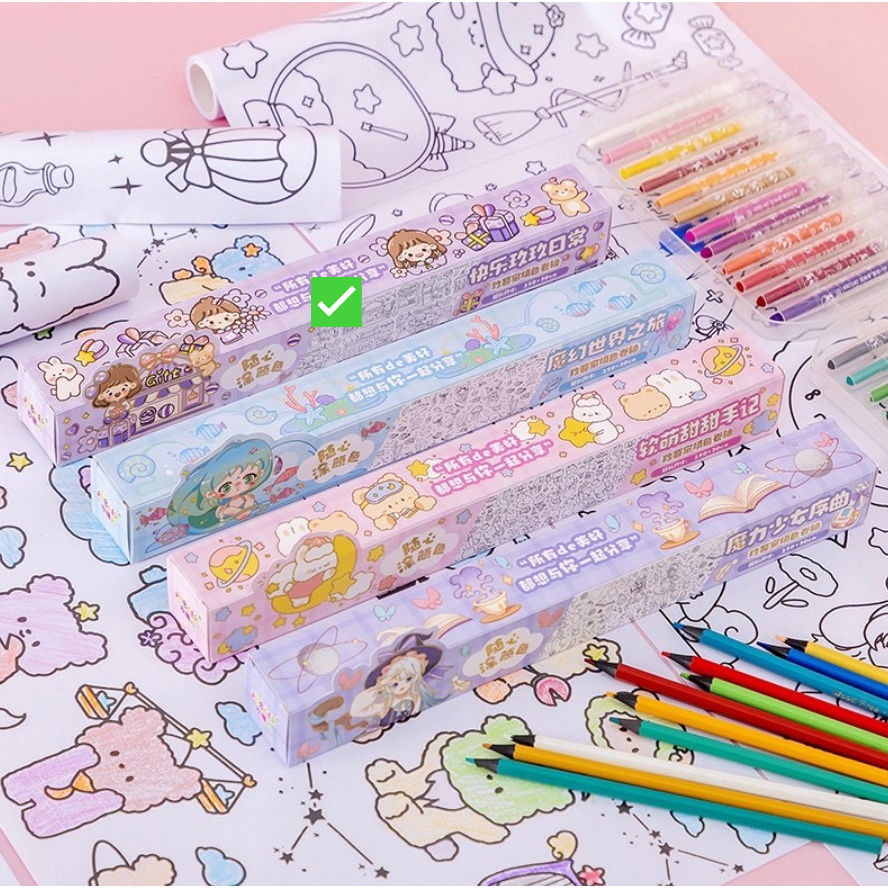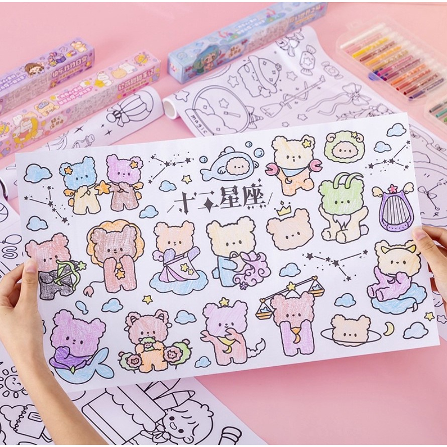 COD Poster Mewarnai Sticker Roll Tempel / Kertas Mewarnai Stiker Roll Bisa Ditempel Anak Jumbo Drawing Book Children Mainak Edukasi Anak P76