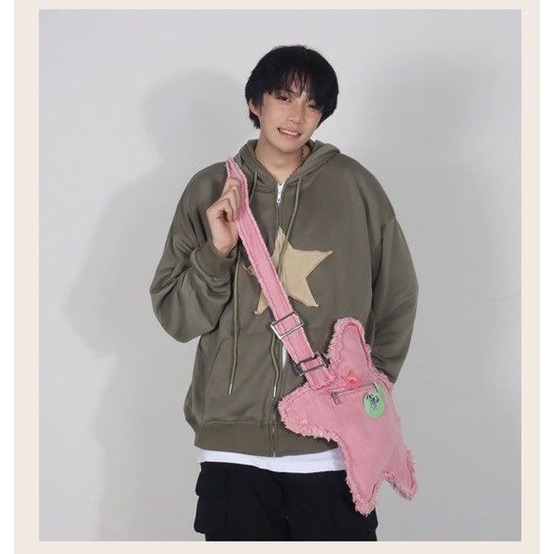 COD##Y2K BAGS/ Y2K TAS AESTHETIC WITH CHAIN TAS BAHU KEKINIAN/Washed frayed denim star bag