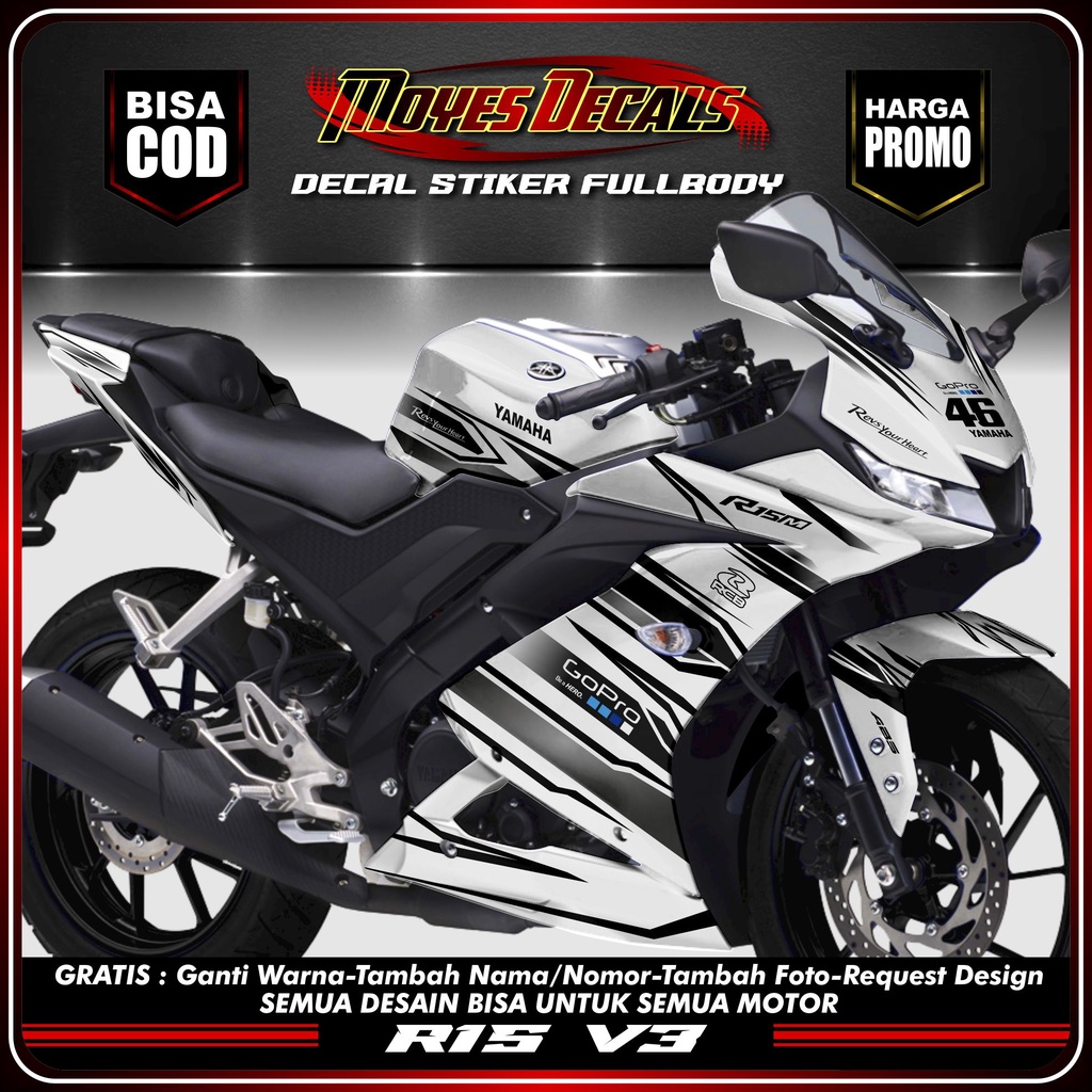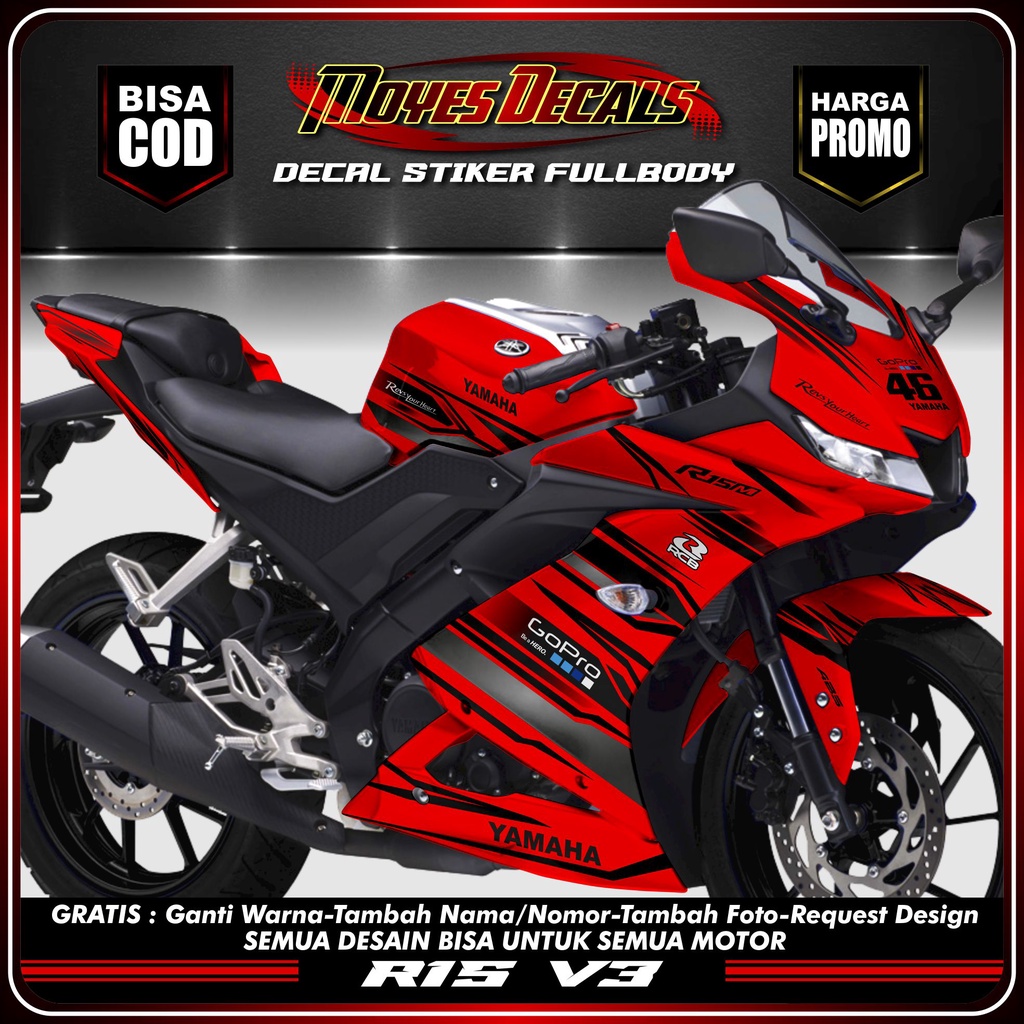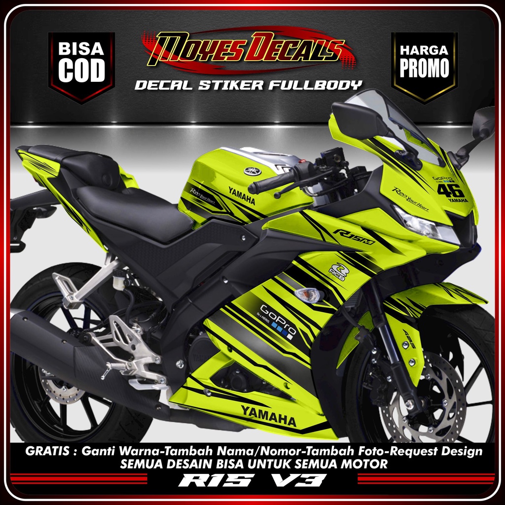 COD stiker decal striping motor r15 v3 stiker fullbody yamaha r15 v3 racing kuning