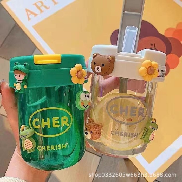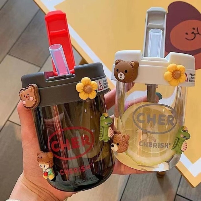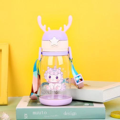 BOTOL MINUM ANAK 600ML FREE TALI BPA FREE / Botol Minum Tanduk Rusa Tali Sedotan / Botol Minum CHER anak / Botol minum karakter murah