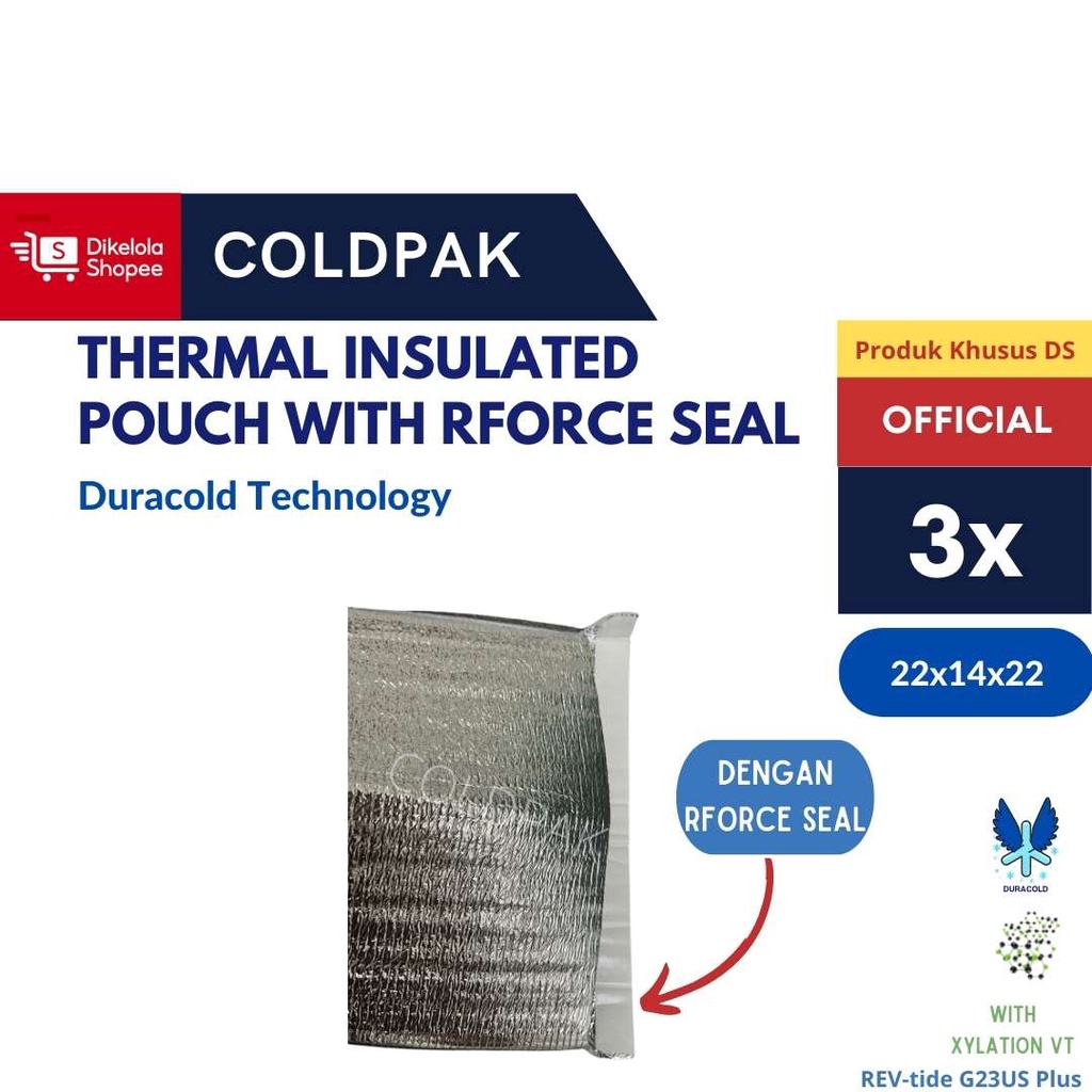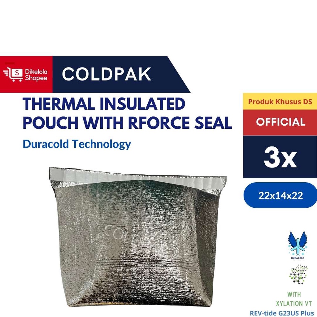 COLDPAK Thermal Insulated Pouch 22x14x22 Dengan Seal isi 3 pcs Packaging Thinwall Frozen Food Tahan Dingin