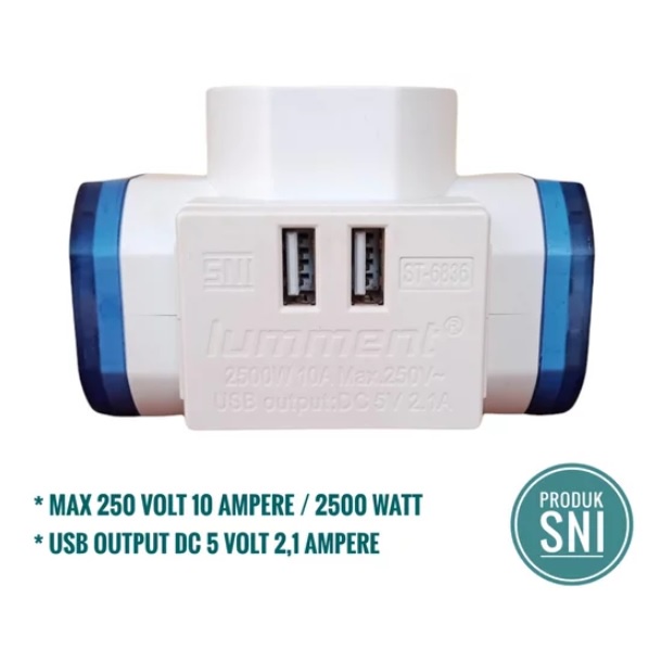 COLOKAN T LISTRIK 2 USB PORT STEKER T ARDE LUMMENT SNI TRAVELLING