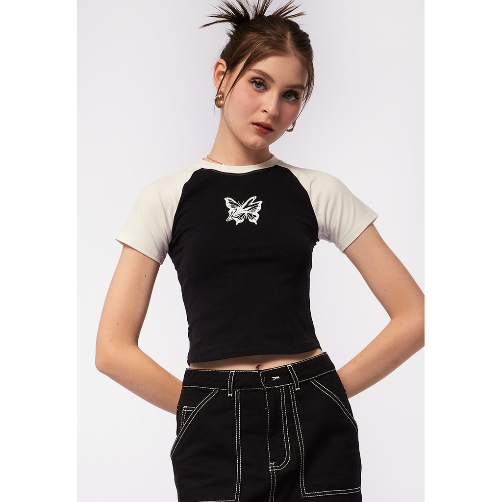 COLORBOX Contrast Raglan T-Shirt Black